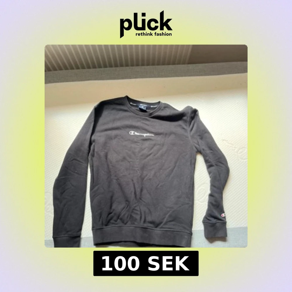 Svart sweatshirt från Champion med klassisk logga på bröstet och ärmen. Tröjan har rund halsringning, ribbade muddar och är tillverkad i mjuk bomull. Perfekt för en chill och sportig stil.