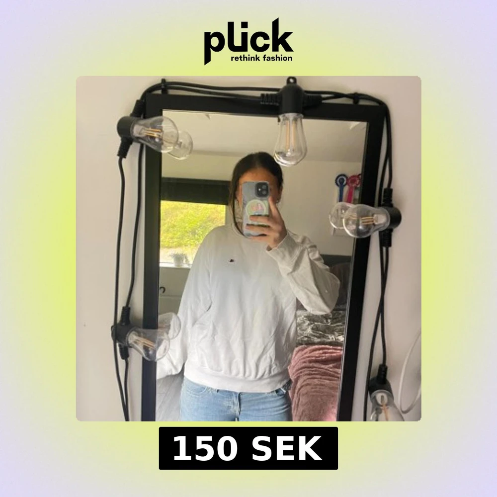 Säljer en klassisk vit sweatshirt från Champion med liten broderad logga på bröstet. Tröjan har rund halsringning och långa ärmar, perfekt för en chill och avslappnad stil. Passar lika bra till jeans som till mjukisbyxor.