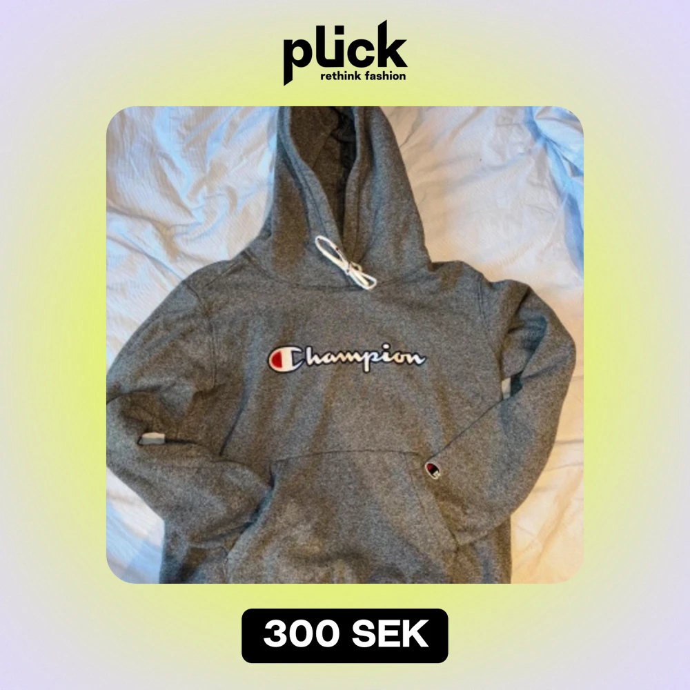 Säljer en snygg grå hoodie från Champion i storlek S. Den har en klassisk Champion-logga på bröstet och en liten logga på ärmen. Hoodien är perfekt för höst och vinter med sin mysiga och varma känsla. Den har en justerbar huva med vita snören och en stor ficka framtill. Perfekt för chill dagar eller en casual look!