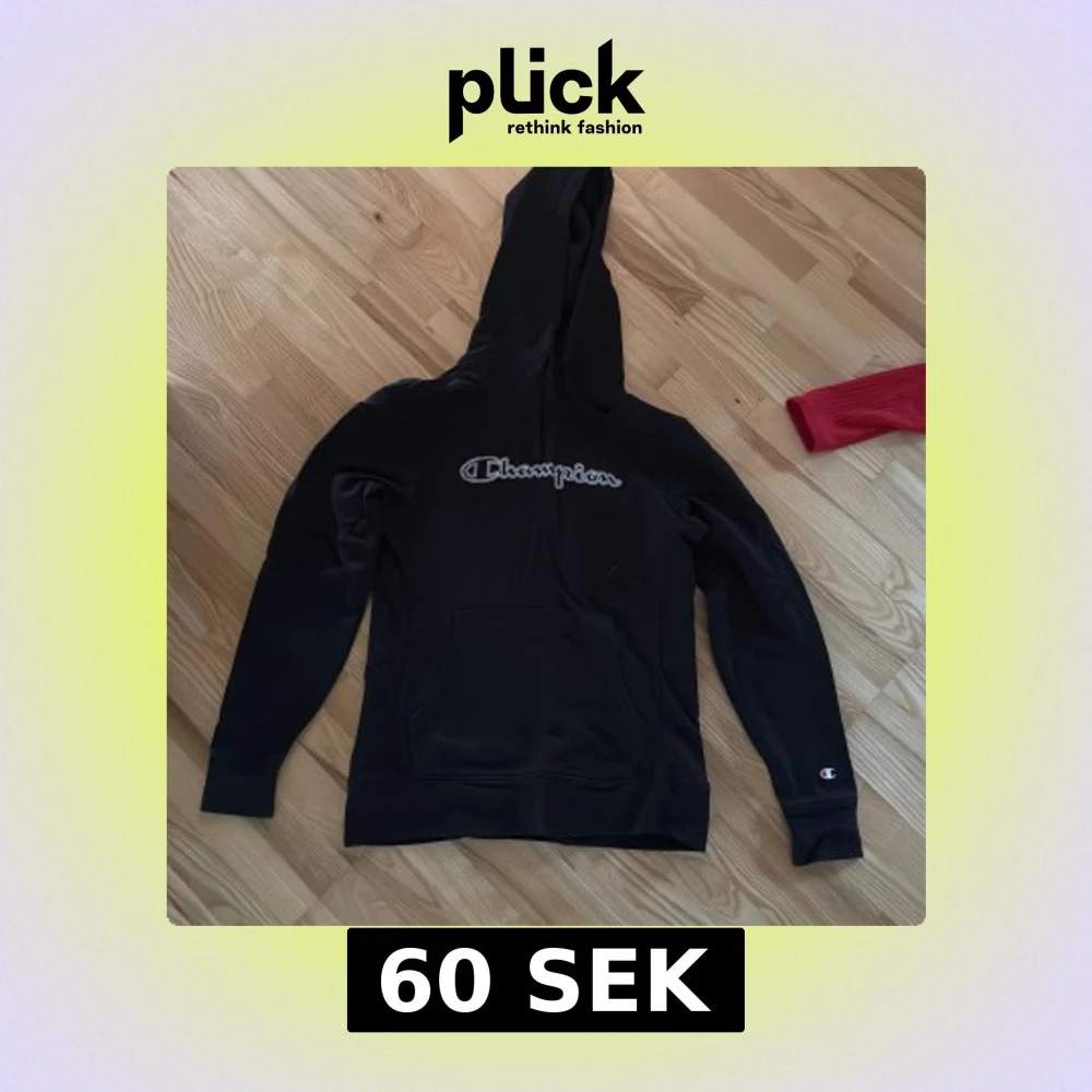 Svart hoodie från Champion med stor logga broderad på bröstet och klassisk känguruficka. Tröjan har huva med dragsko och långa ärmar med Champion-logga på mudden. Perfekt för en chill och sportig stil.