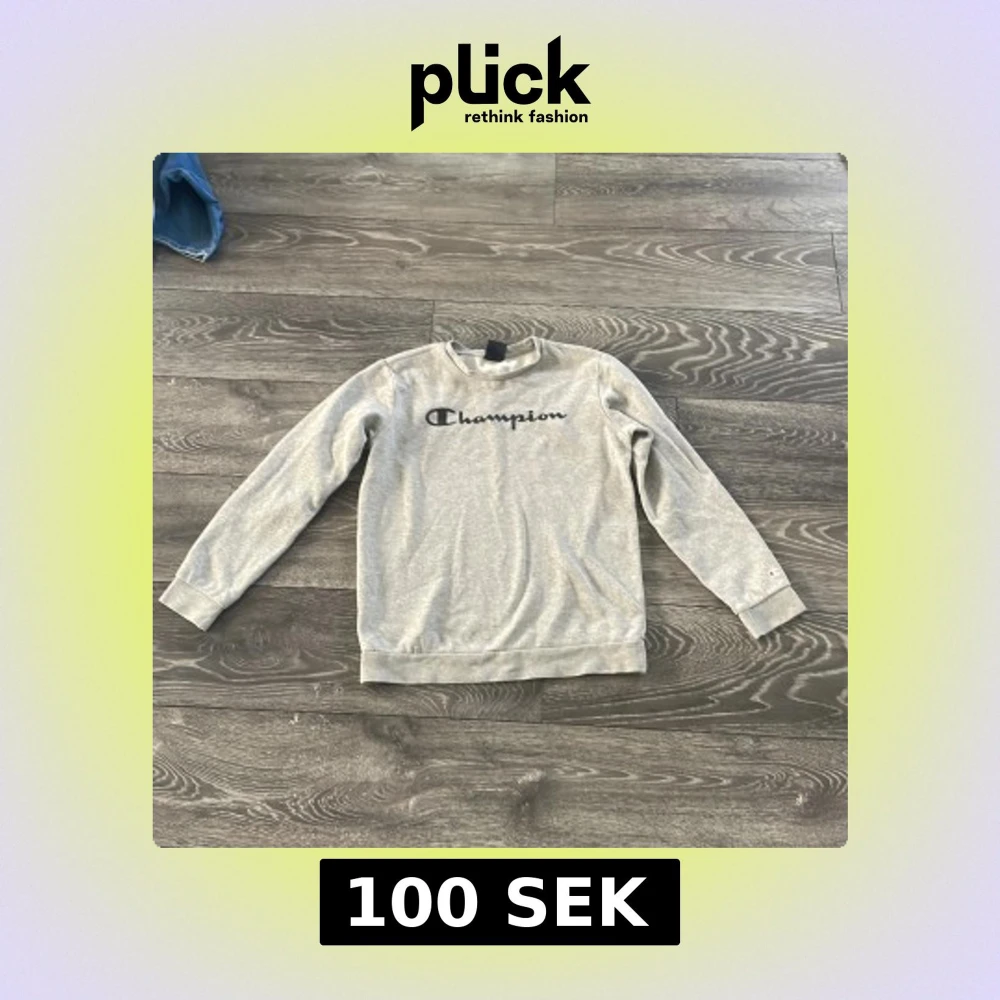 Snygg grå sweatshirt från Champion i storlek X-Large (162/167). Tröjan har svart Champion-logga på bröstet och en liten logga på ärmen. Klassisk crewneck med långa ärmar och mjukt material, perfekt för chill dagar.