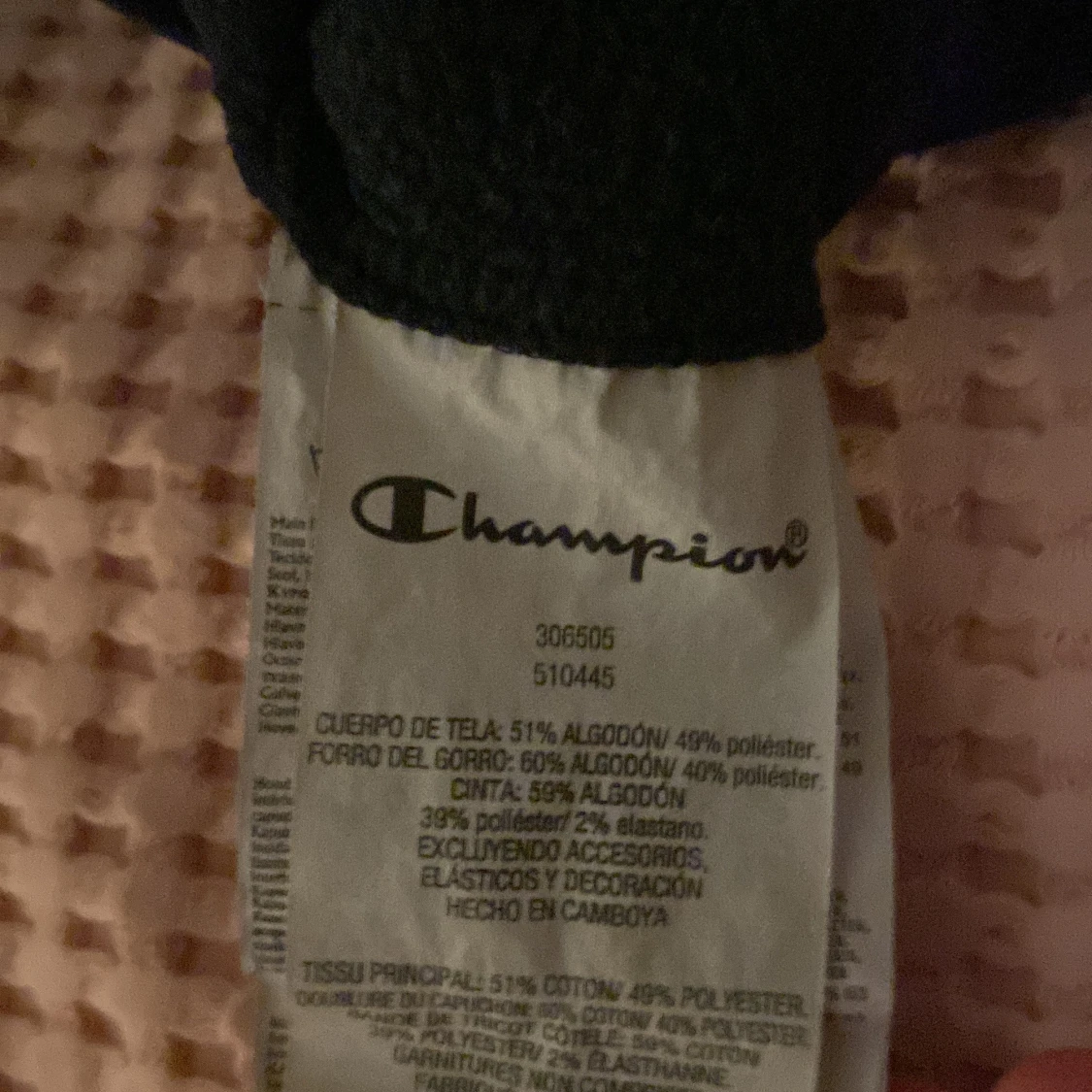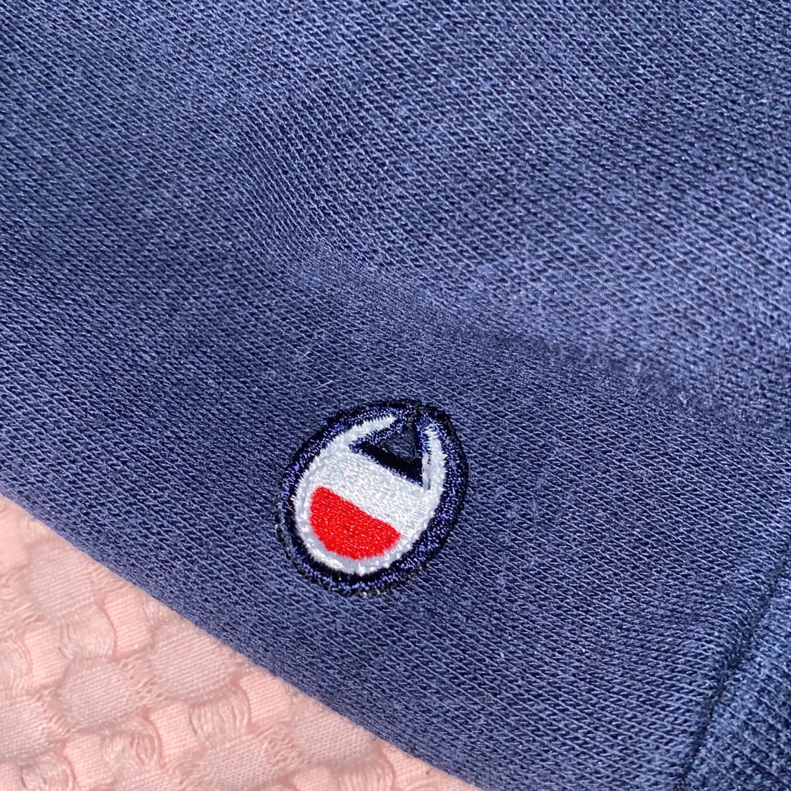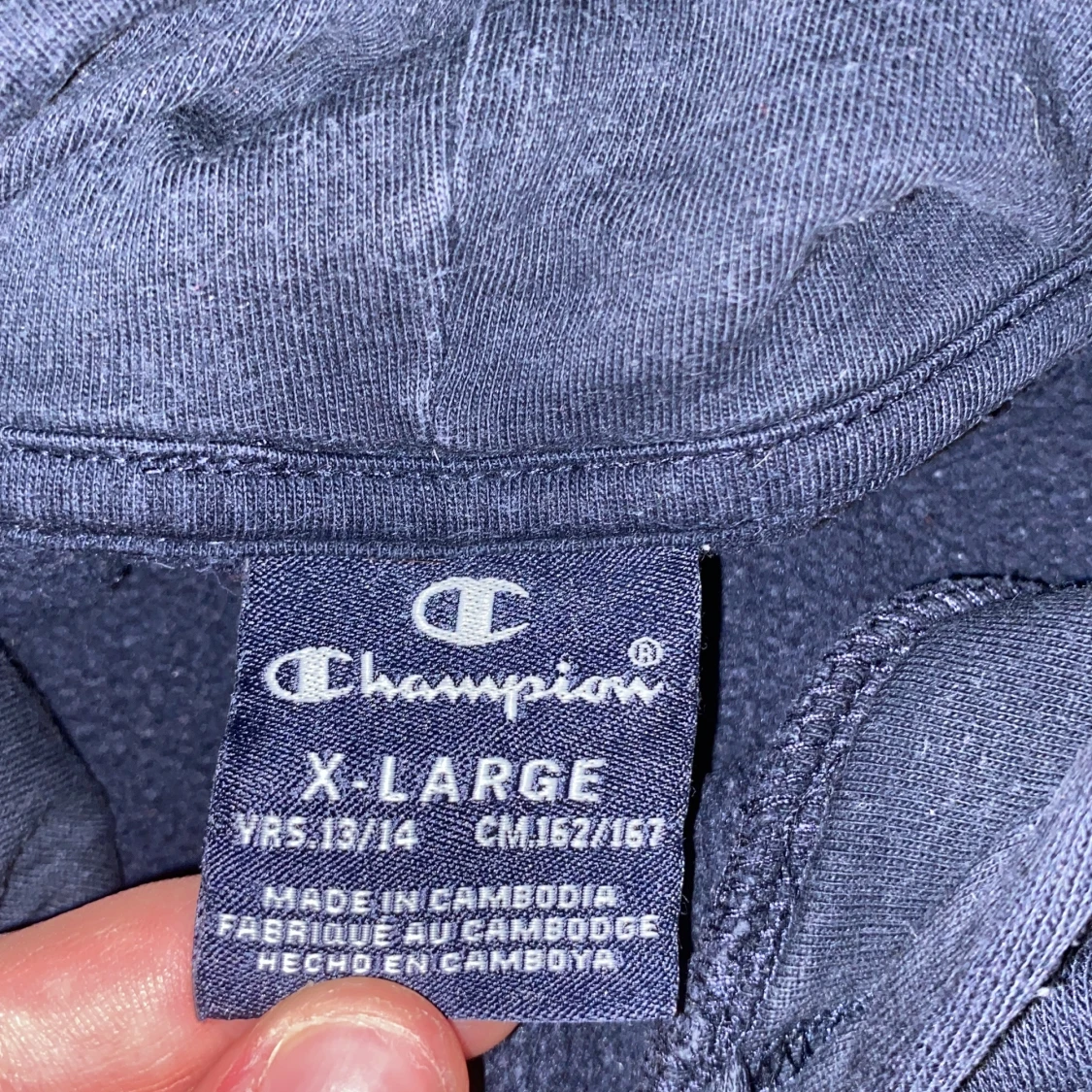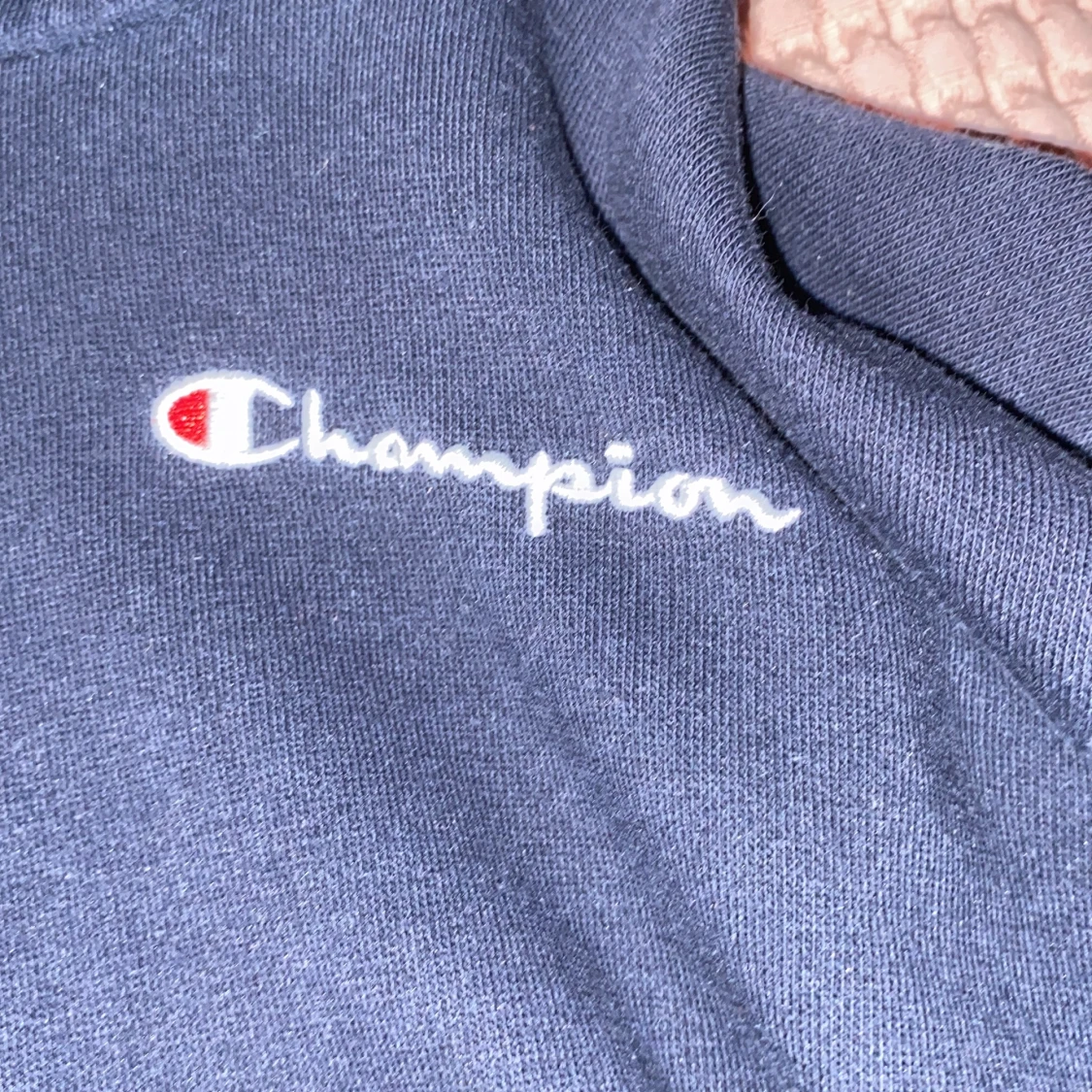 Snygg mörkblå hoodie från Champion i storlek XL. Klassisk modell med huva och lång ärm, broderad Champion-logga på bröstet och ärmen. Perfekt för dig som gillar streetwear och sportig stil.