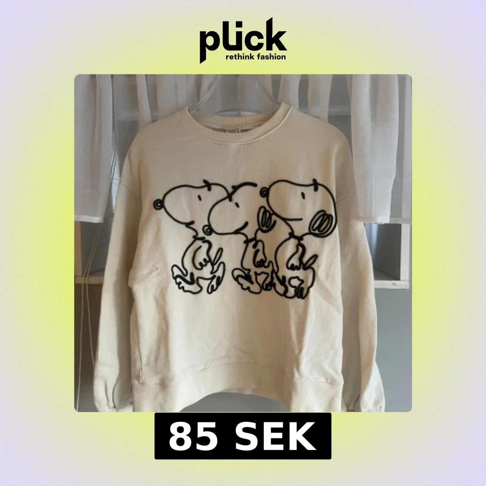 Vit sweatshirt från Zara i samarbete med Peanuts, med stort svart tryck av Snoopy på framsidan. Tröjan har rund halsringning och långa ärmar.