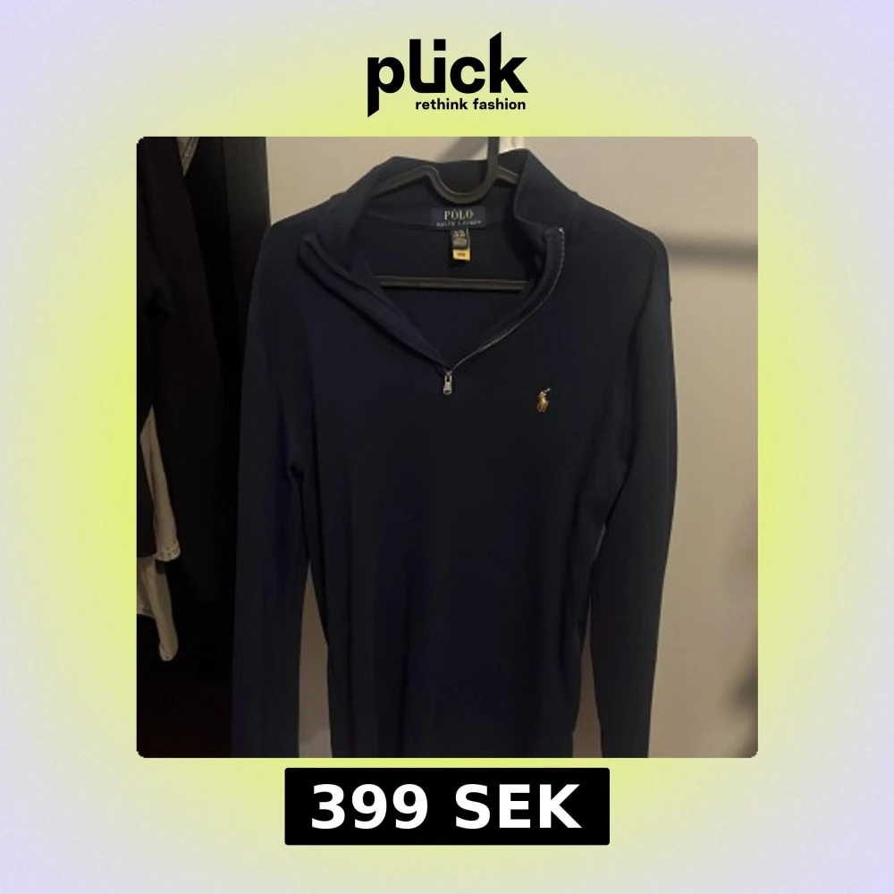 Säljer en stilren mörkblå half zip från Ralph Lauren. Den är i mycket bra skick och passar S, kan även passa M. Tröjan passar perfekt till en avslappnad och elegant look. Hör av er vid minsta fundering.