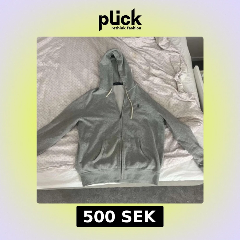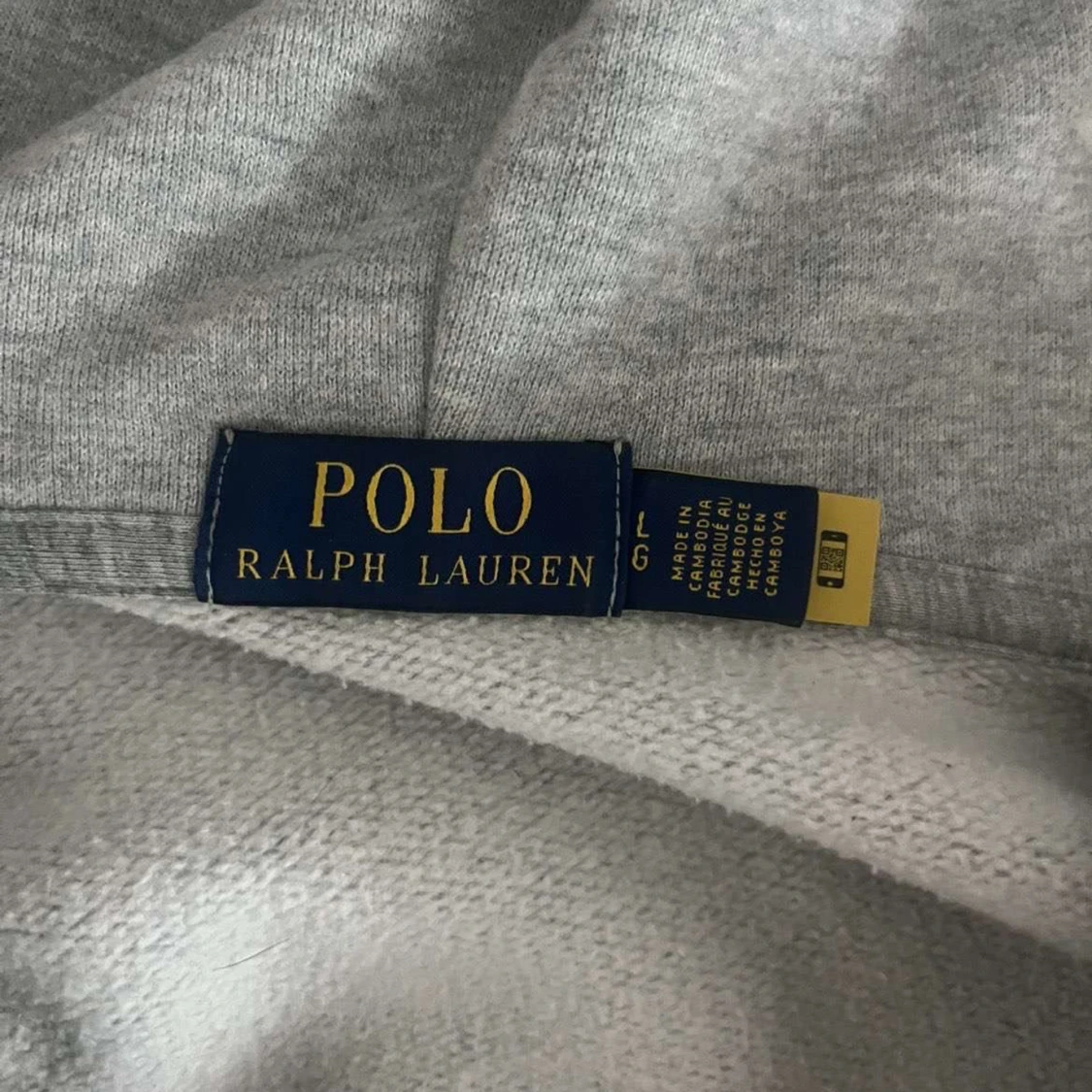 Snygg grå hoodie från Polo Ralph Lauren med dragkedja framtill, huva med vita snören och två fickor. Klassisk broderad logga på bröstet. Perfekt för chill dagar och enkel att matcha med jeans eller joggers.