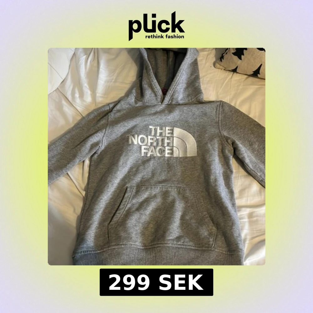 Snygg grå hoodie från The North Face med stor vit logga på bröstet. Tröjan har huva, magficka och ribbade muddar. Tillverkad i mjuk bomullsblandning med polyester för extra komfort. Perfekt för chill dagar eller när du vill ha en clean streetstyle. Den e några år gammal men e fortfarande i väldigt bra skick storlek är i L i junior så passar nån mellan 150-160 beroende på passform skriv om ni undrar något mvh Arvid