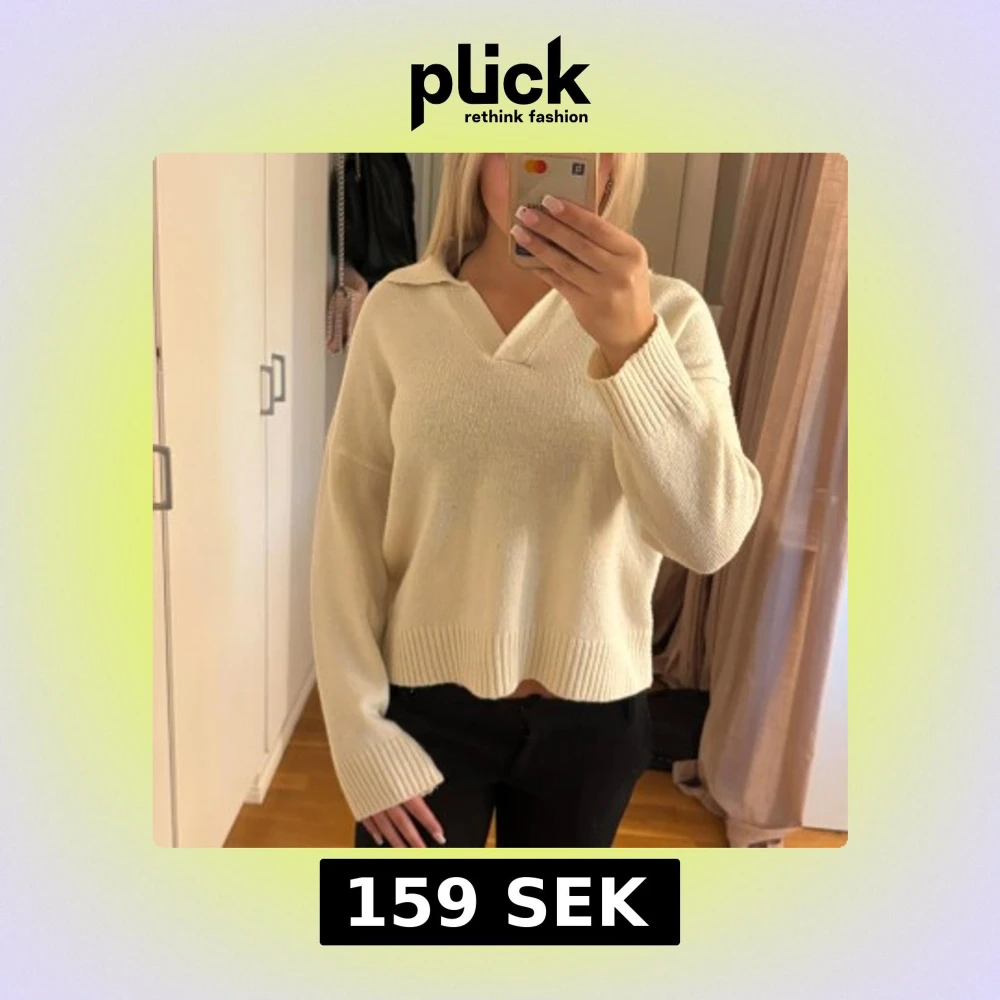 Beige stickad tröja med krage