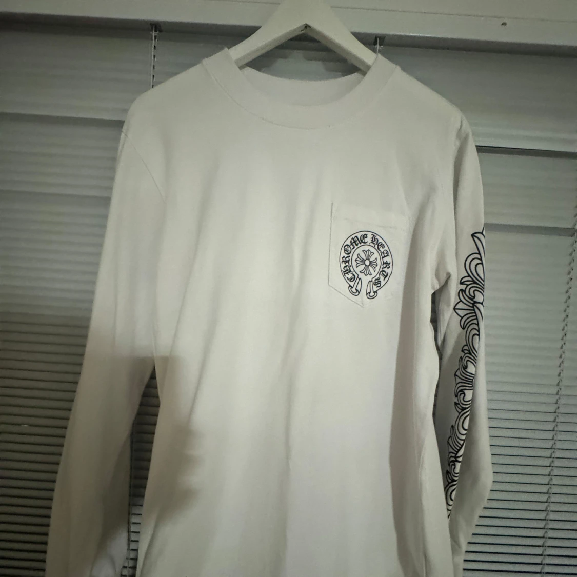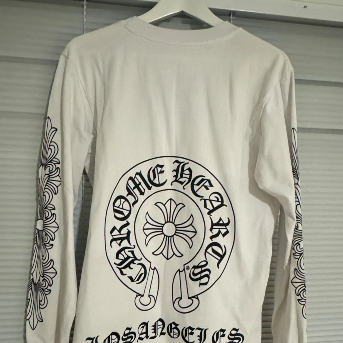 Säljer en långärmad Chrome Hearts-tröja i vitt med exklusiva detaljer från deras Los Angeles-kollektion. Tröjan är i perfekt skick och kombinerar högkvalitativ design med märkets ikoniska grafiska inslag. Priset kan diskuteras !