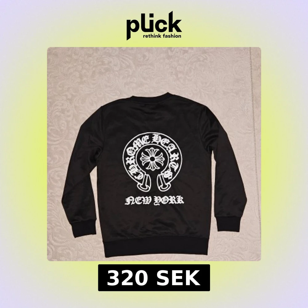 Svart sweatshirt från Chrome Hearts med stor vit logga och New York-tryck på ryggen samt mindre logga på bröstet. Tröjan har rund hals, långa ärmar och ribbade muddar. Perfekt för dig som gillar streetwear och vill sticka ut med en fet design.