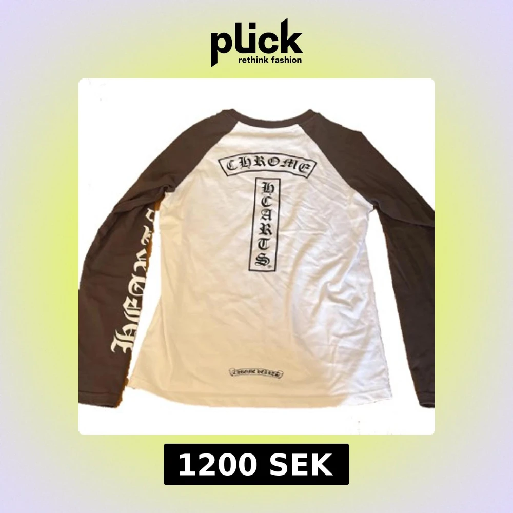 Säljer en långärmad tröja från Chrome Hearts med vita och mörkgrå kontrastärmar. Stora tryck med Chrome Hearts-logga på ryggen och ärmarna. Skön passform och tillverkad i bomull, perfekt för dig som gillar streetwear vibes.