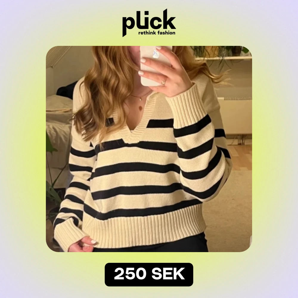 Krämvit tröja, svarta ränder. Den är i storlek S och kommer från Cider. Använd 3-4 gånger. Jag använder den inte, därför säljer jag den. Nypris var 400kr. Kom gärna med förslag på pris och ställ frågor om det behövs😊😊💗