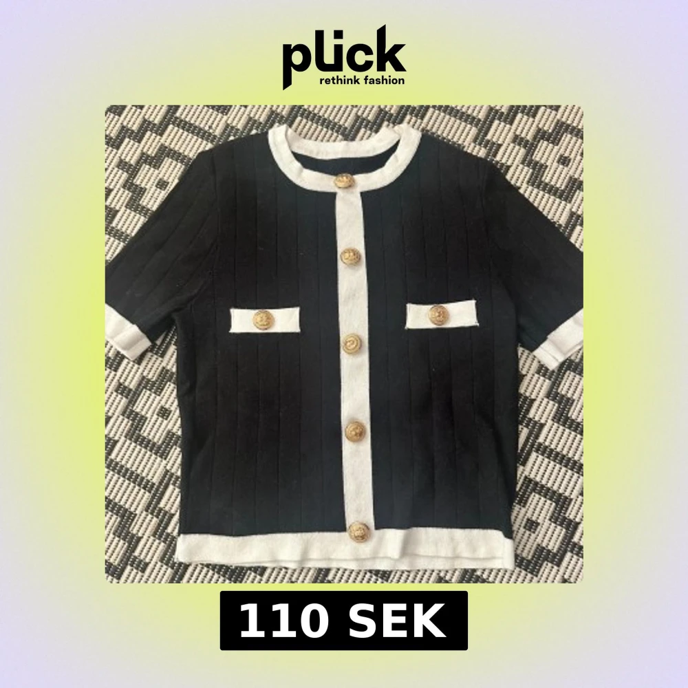 Stilren svart kofta med vita detaljer från Cider. Kortärmad modell med ribbad struktur, dekorativa guldknappar framtill och vid fickorna. Materialmix av viskos, polyester och polyamid. Perfekt för dig som gillar en klassisk men trendig look.