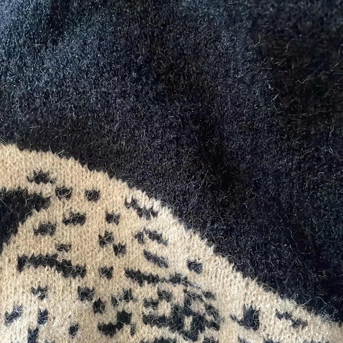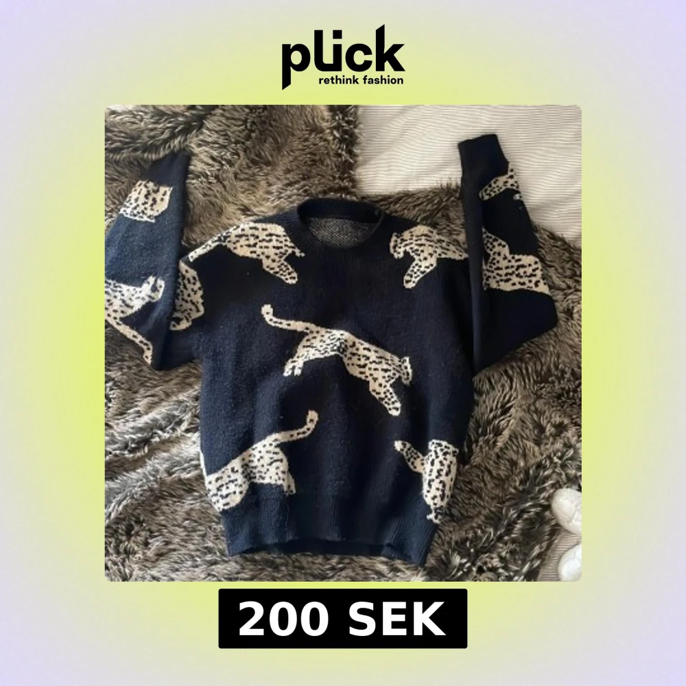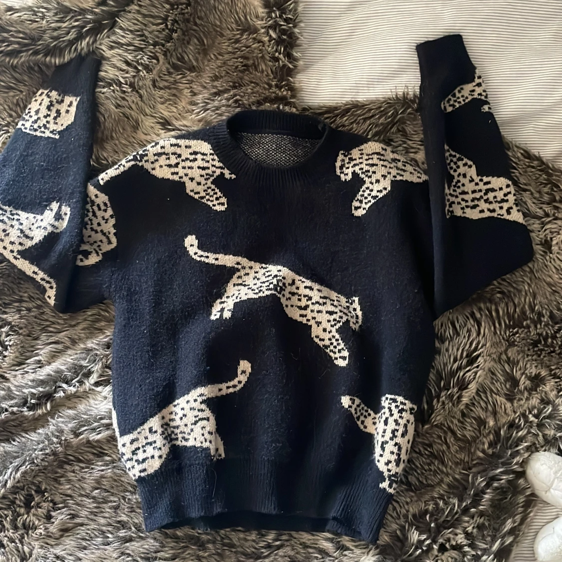 Cool svart stickad tröja från Cider med beige leopardmönster över hela plagget. Tröjan har rund hals, långa ärmar och en loose passform som ger en avslappnad vibe. Perfekt för dig som vill sticka ut med ett djuriskt print.