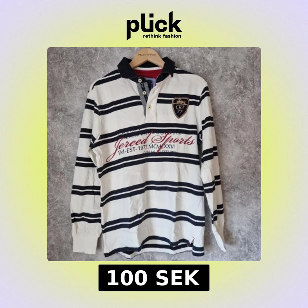 Säljer en stilren randig pikétröja från Ciritte i svart och vit bomull. Tröjan har långa ärmar och en klassisk krage med knappar. Perfekt för en avslappnad och sportig look.