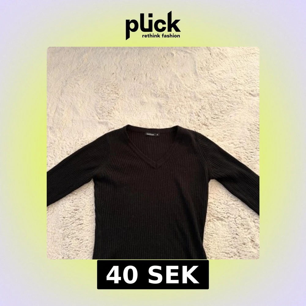 Säljer en stilren svart ribbad tröja från Boohoo. Tröjan har en v-ringad hals och långa ärmar, perfekt för en enkel och snygg look. Passar bra till både jeans och kjol. Hör av dig vid intresse!