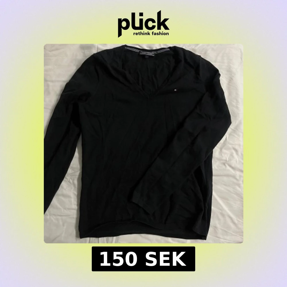 Svart v-ringad tröja från Tommy Hilfiger i storlek S. Långärmad och tillverkad i mjuk bomull, perfekt för en clean och stilren look. Jag har inte riktigt använt den då för den är ganska stretchig och den va för stor för mig.