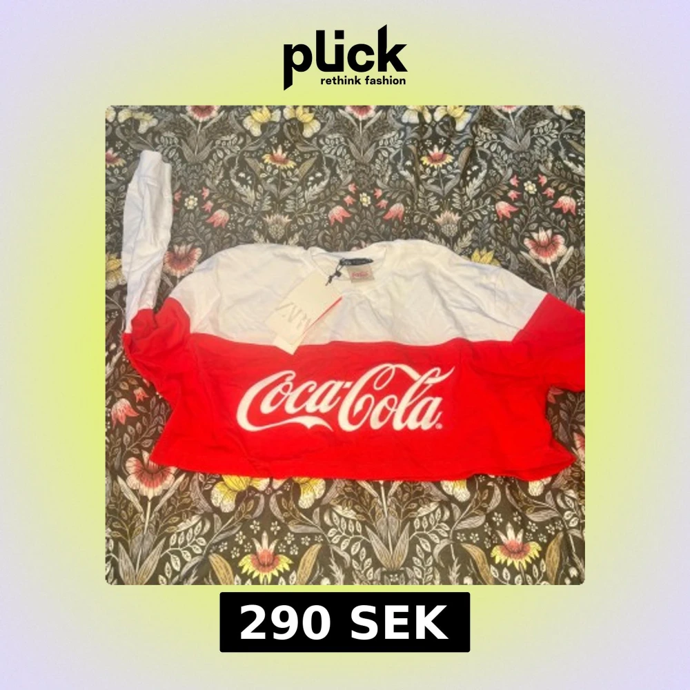 Säljer en croppad långärmad tröja från Zara x Coca-Cola. Tröjan är vit upptill och röd nedtill med stor Coca-Cola-logga framtill. Tillverkad i mjuk bomull och har en avslappnad passform. Perfekt statement piece för dig som gillar coola loggor.