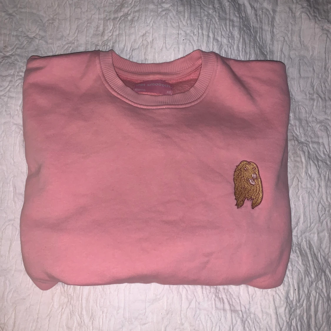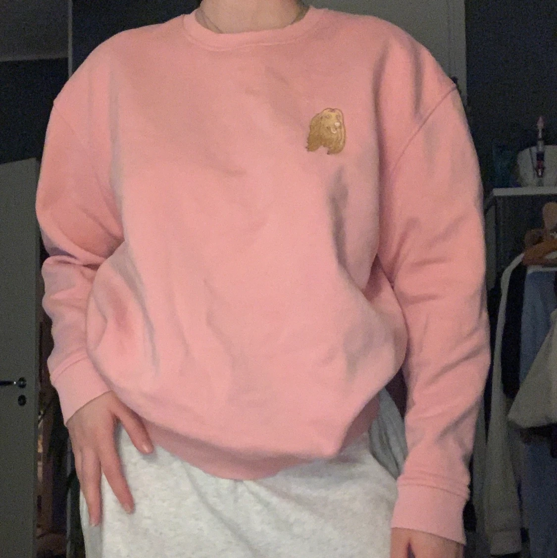 En super fin och bekväm Collegetröja i färgen ljusrosa💗 Även med ett tryck på vänster bröst på en ljusbrun hund💓 supergullig. Köpt från secondhand, super bra skick! Kommer tyvärr inte till användning då jag har för många tröjor som liknar denna❣️
