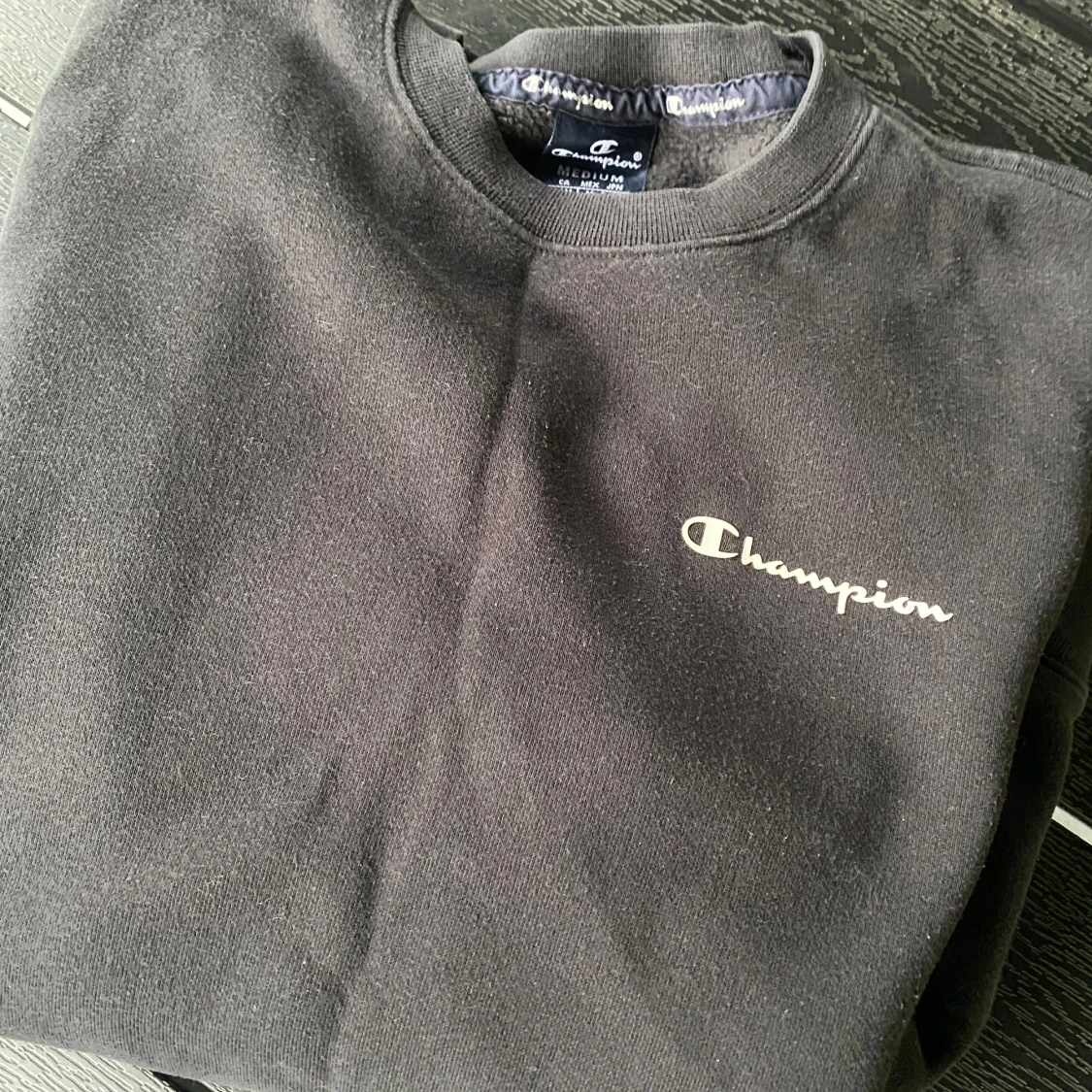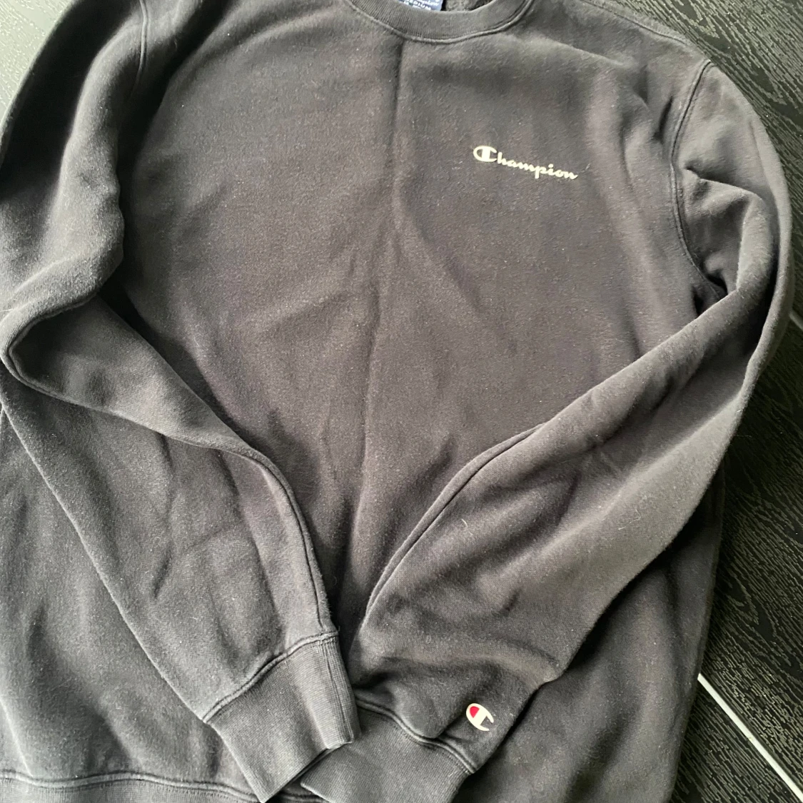 Klassisk champion collegetröja med Champion-logga på bröstet och liten logga vid ärmslutet.