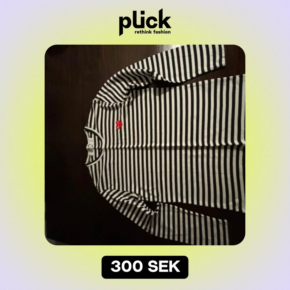 Säljer denna Comme des garcons tröja som är bra skick bara en liten fläk längst nere på armen. Storleken på tröjan är M. Frågor och funderingar så är det bara att skriva!