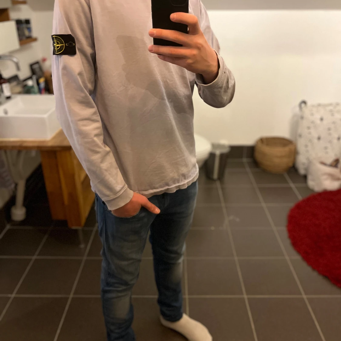 Vit långärmad tröja från Stone Island med klassisk rund hals och ikonisk patch på vänster ärm. Tröjan är i mjuk bomull och har en clean, stilren look som passar perfekt till jeans. Snygg passform och diskret branding för dig som gillar streetwear.