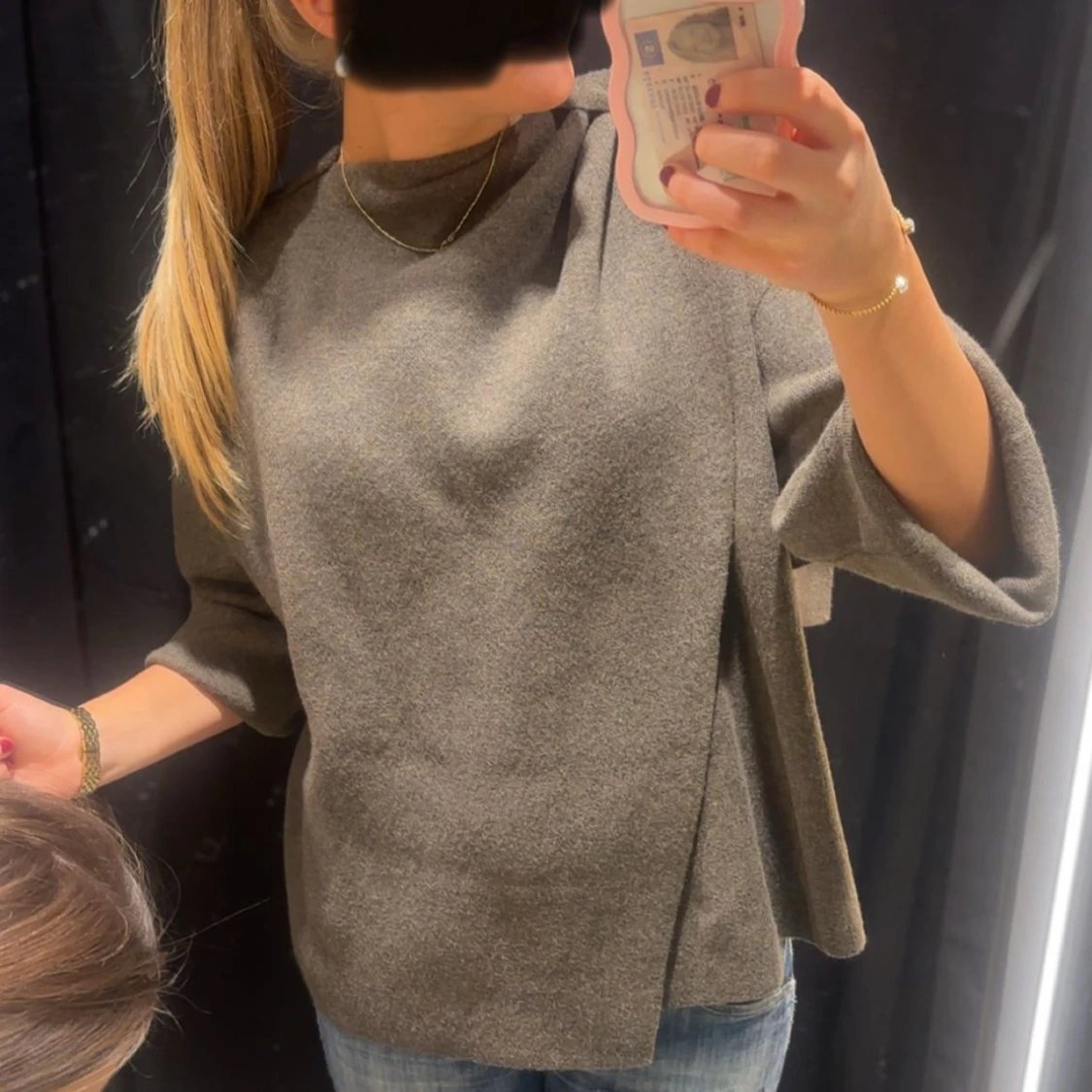 Säljer en brunn grå cool tröja från zara . köptes igår men klippte av prislappen! har vikt upp armarna på bilden!❤️ köpte för 850