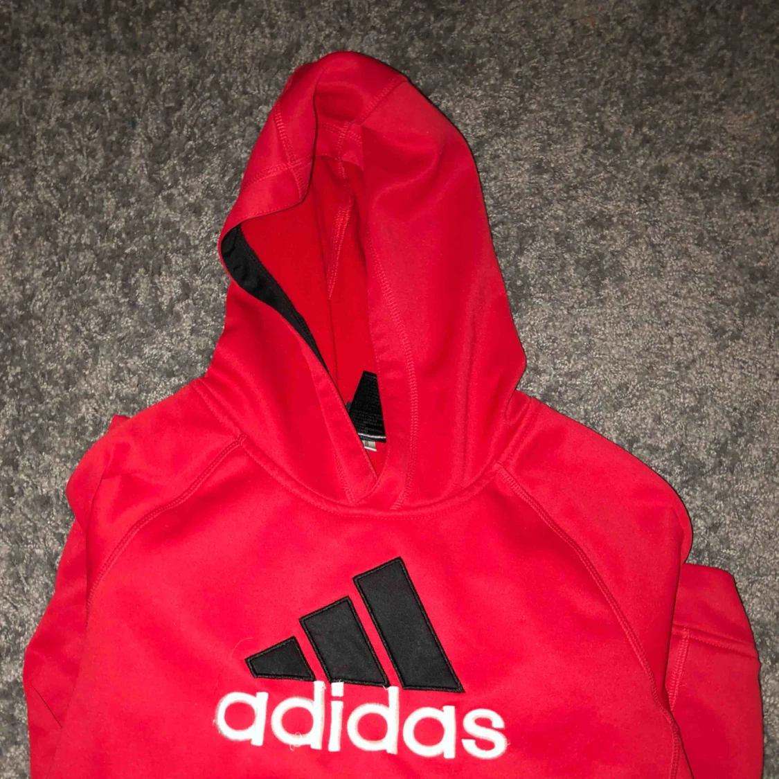 Röd Adidas Hoodie köpt i USA i nån sportaffär för 80 dollar. Fint skick (8/10). Bra för träning utomhus och även väldigt skön!