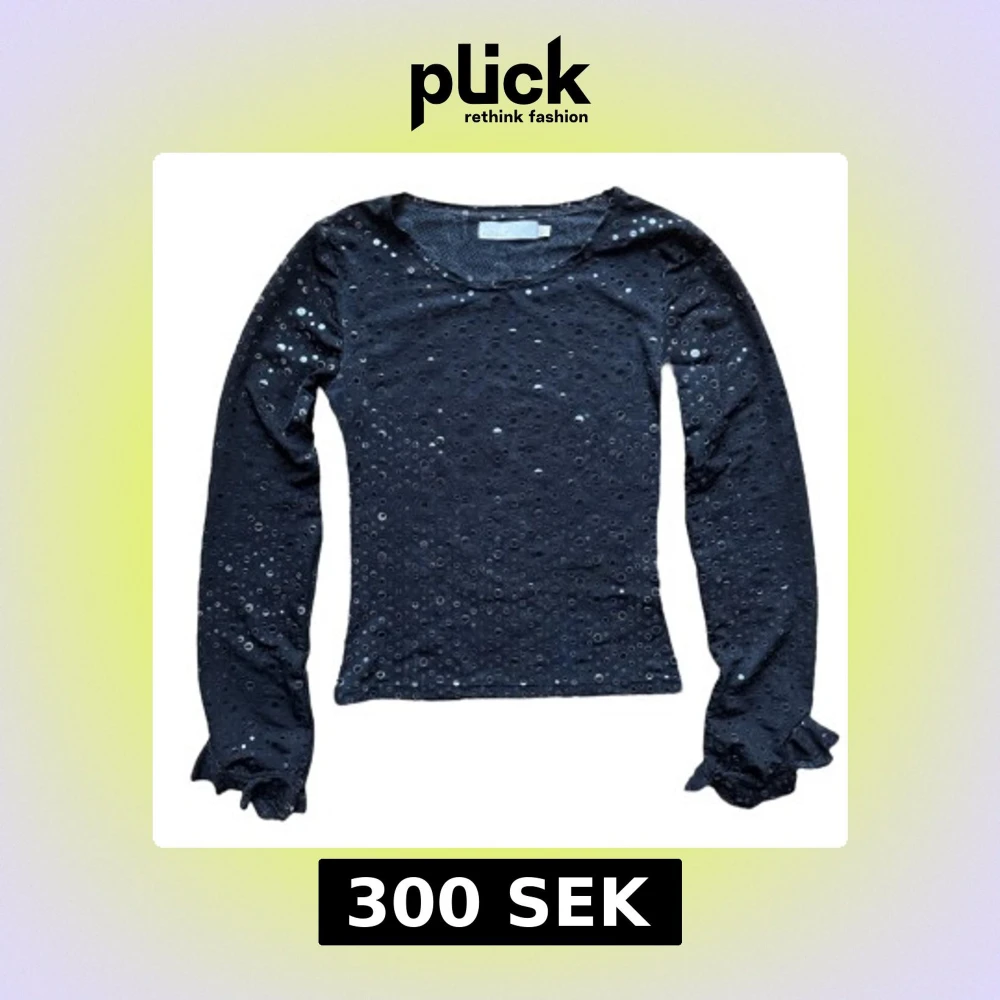 Säljer en svart långärmad topp från ICHI med glittriga paljetter över hela tröjan. Passar ennXS-S