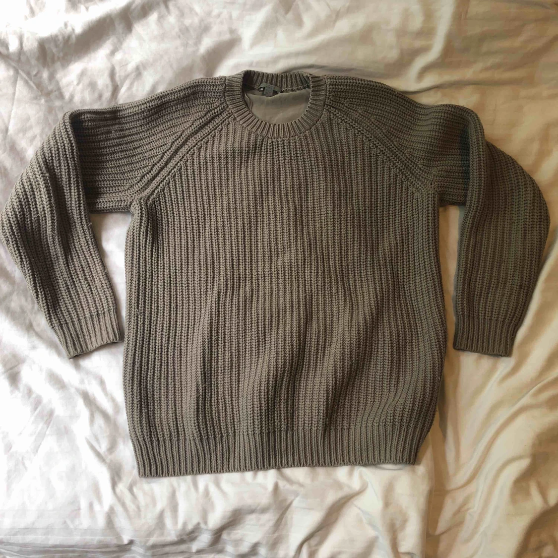 En tröja köpt begagnad. Färgen är grå. Lite nopprig. Baksidan är silke