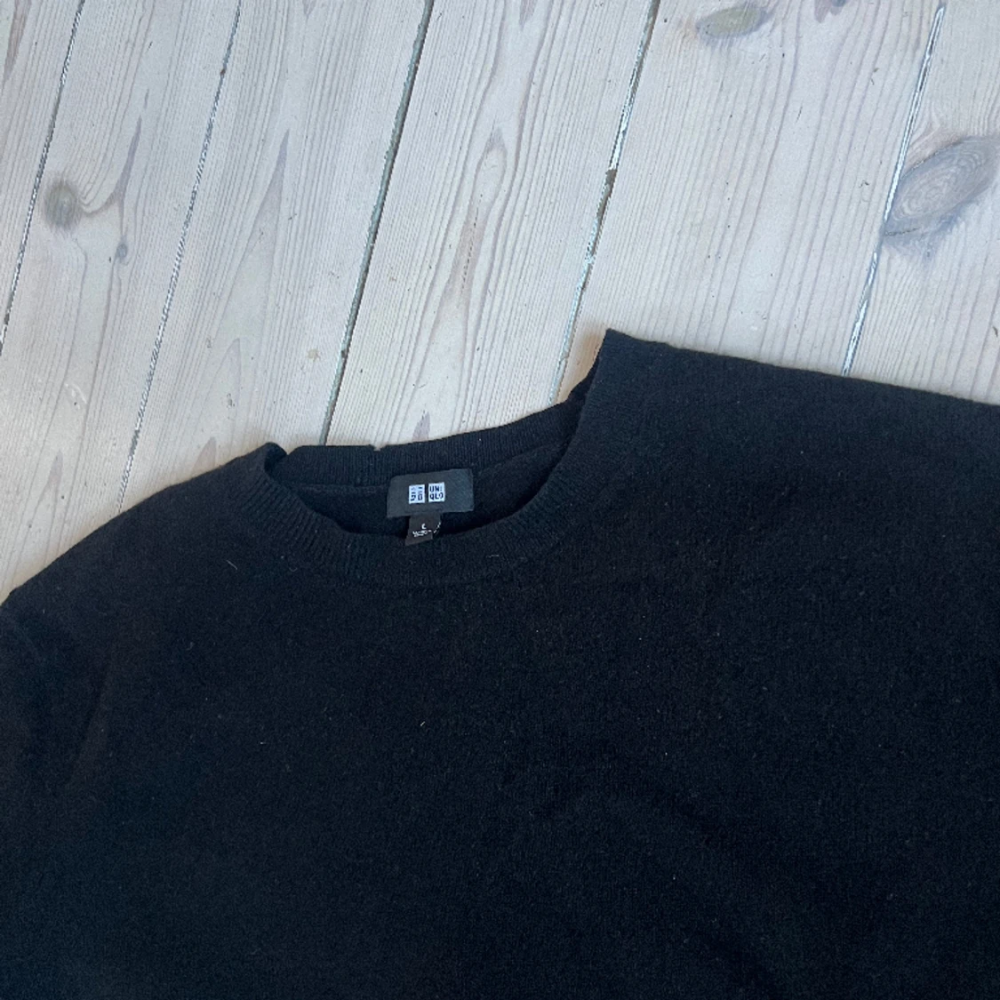 Svart stickad tröja från Uniqlo, använd men i bra skick. Svart i hundra procent Kashmir