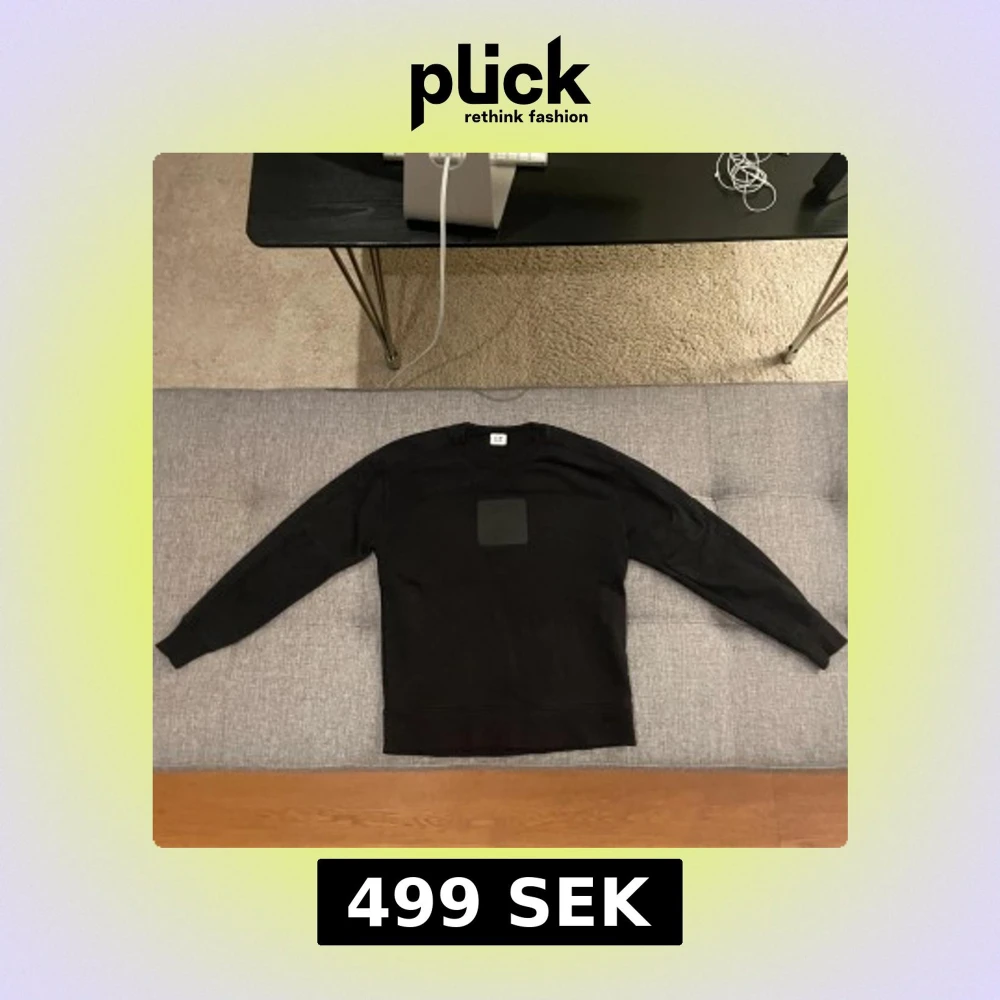 Snygg svart tröja från C.P. Company med en fyrkantig patch på bröstet. Perfekt för en stilren look.
