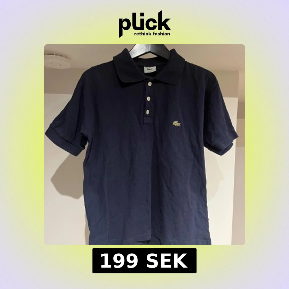 Klassisk mörkblå pikétröja från Lacoste med ikoniska krokodilloggan broderad på bröstet. Tröjan har korta ärmar, krage och tre knappar framtill. Tillverkad i mjuk bomull som känns skön mot huden. Är i bra skick! Bara att höra av sig vid eventuella frågor!😉