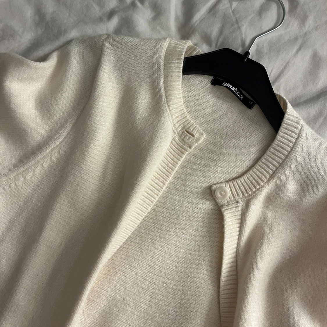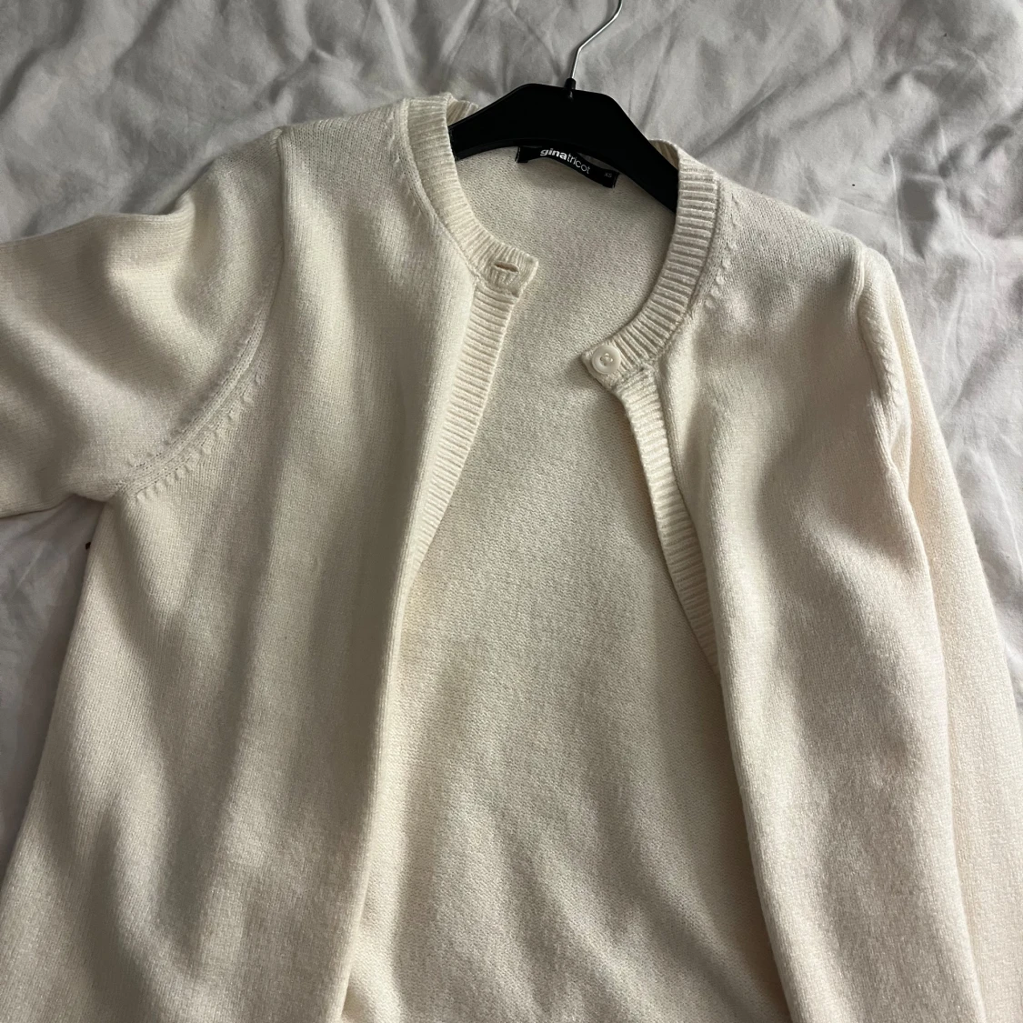 Superfin cremefärgad kofta från Gina Tricot med rund halsringning och knapp upptill. Mjuk och skön, perfekt att slänga över en topp. Klassisk och enkel design som funkar till allt. Storlek XS aldrig använd, helt ny 💕💕