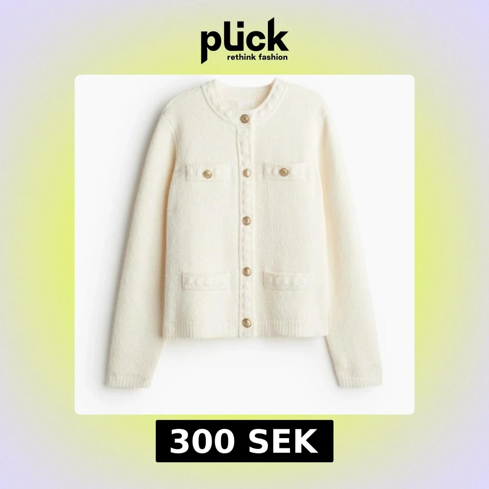 Säljer en stilren vit kofta med rund hals och dekorativa guldknappar framtill. Koftan har två bröstfickor och två fickor nertill, samt långa ärmar. Perfekt för att lyfta vilken outfit som helst! I storlek xs, nytt skick!