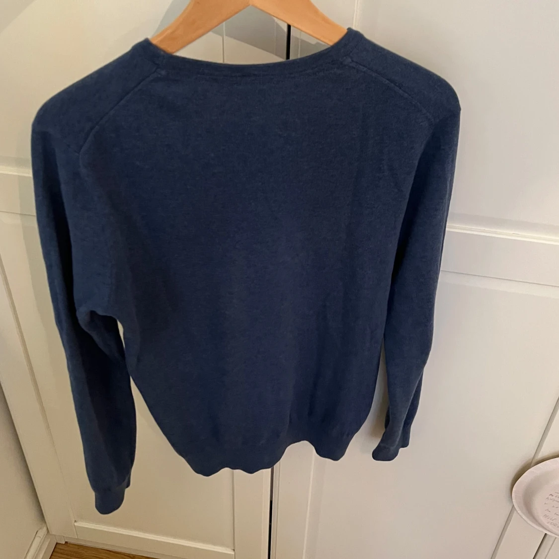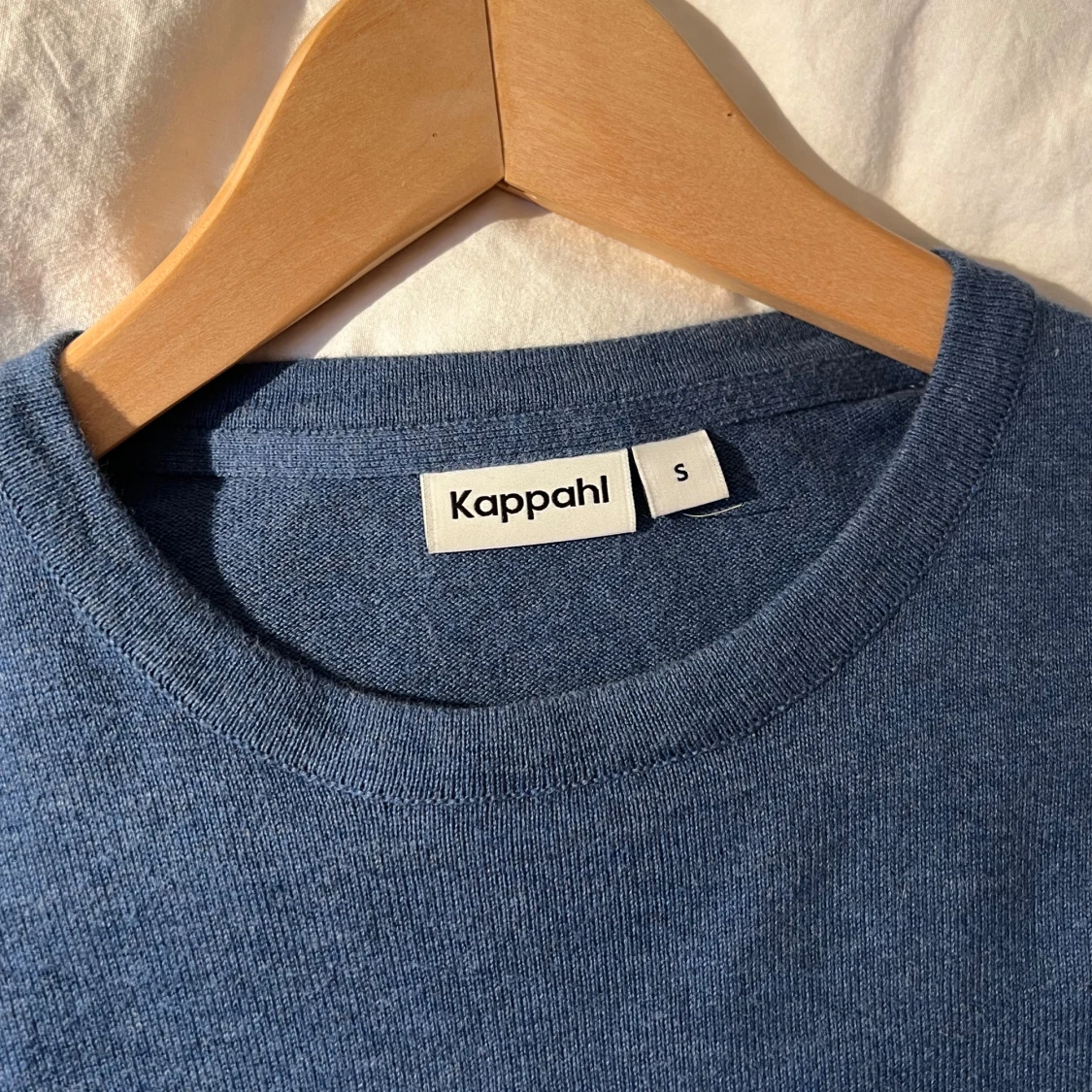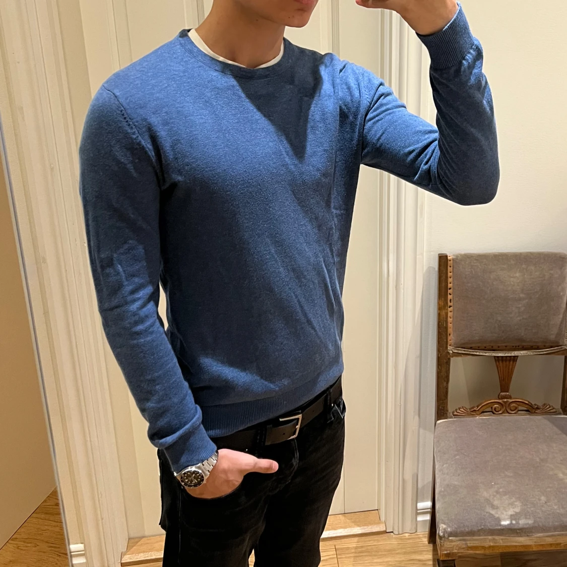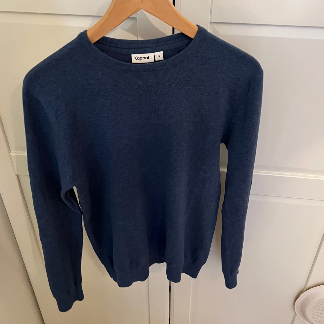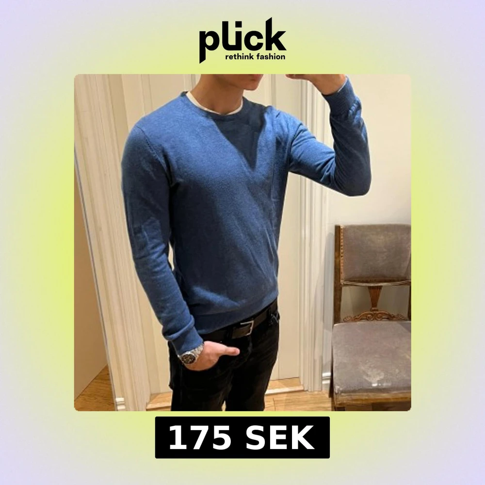 En stilren blå stickad tröja från Kappahl i storlek S. Tröjan sitter slim fit, den har rund halsringning, ribbade muddar och lång ärm. Perfekt för lager-på-lager och funkar lika bra till jeans som till chinos. Mycket bra skick. Skriv om du har frågor🙌