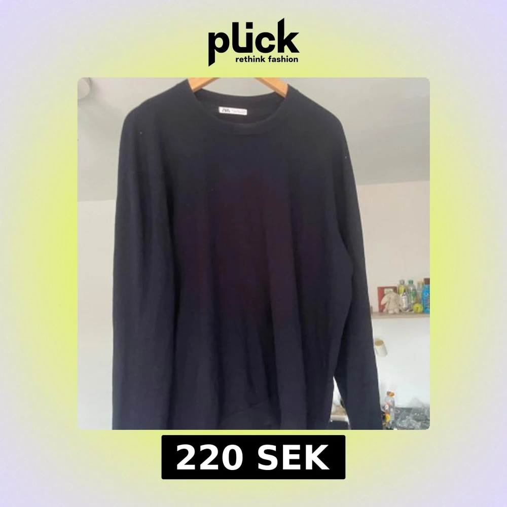 En stilren mörkblå tröja från Zara i storlek L. Tröjan har rund halsringning och långa ärmar, perfekt för lager-på-lager. Tillverkad i mjuk bomull som känns skön mot huden. Enkel och clean design som funkar till det mesta.