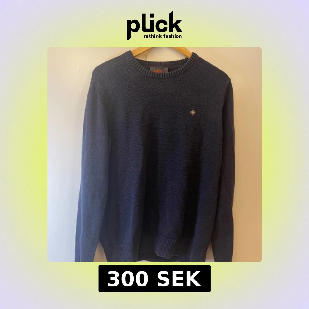 Stickad Marinblå Morris crewneck. I gott använt gott. Storlek L.