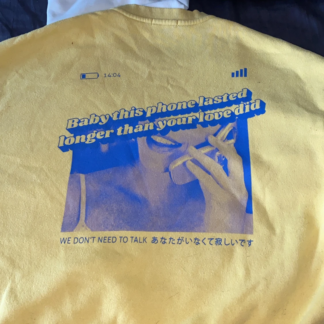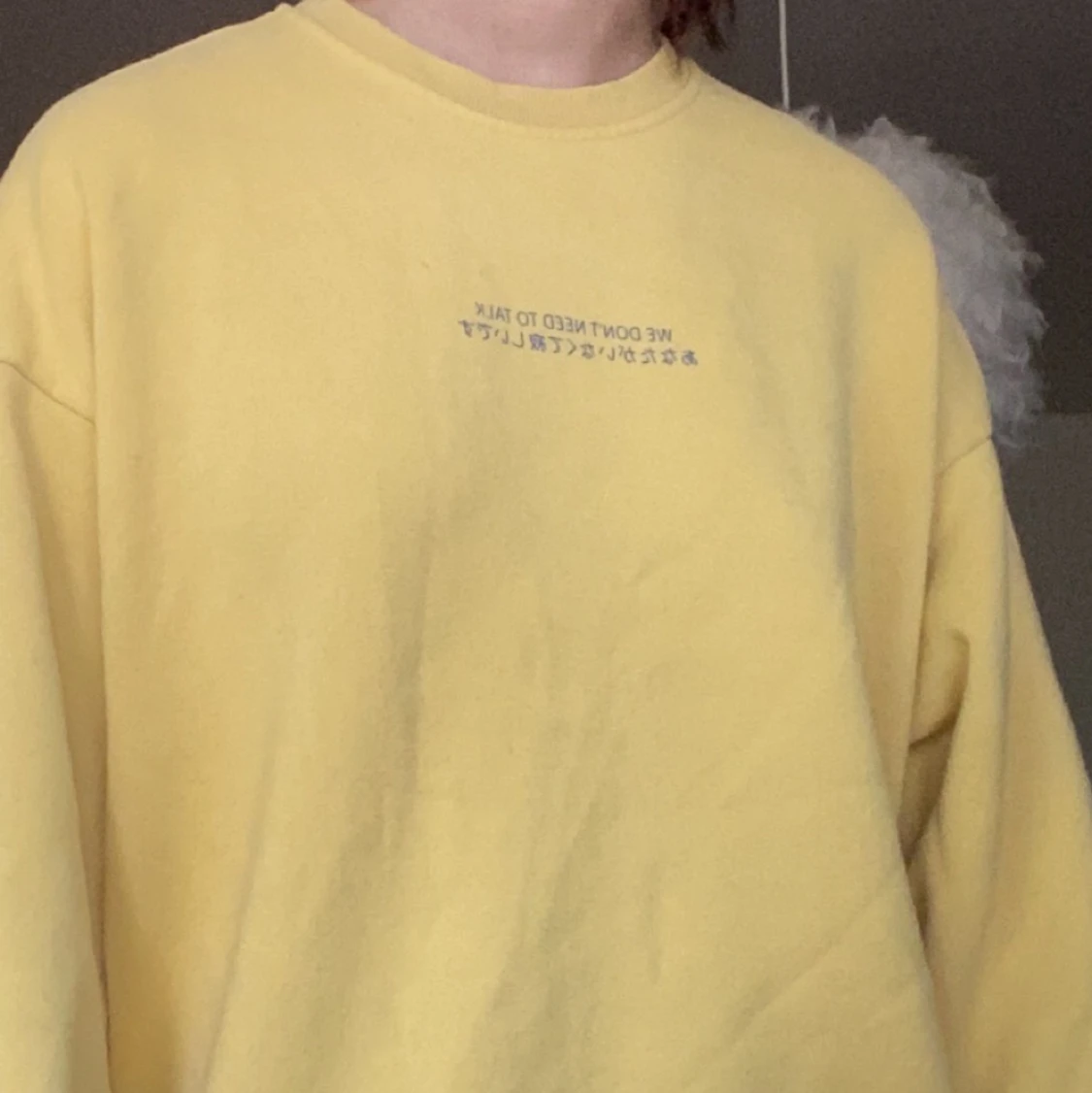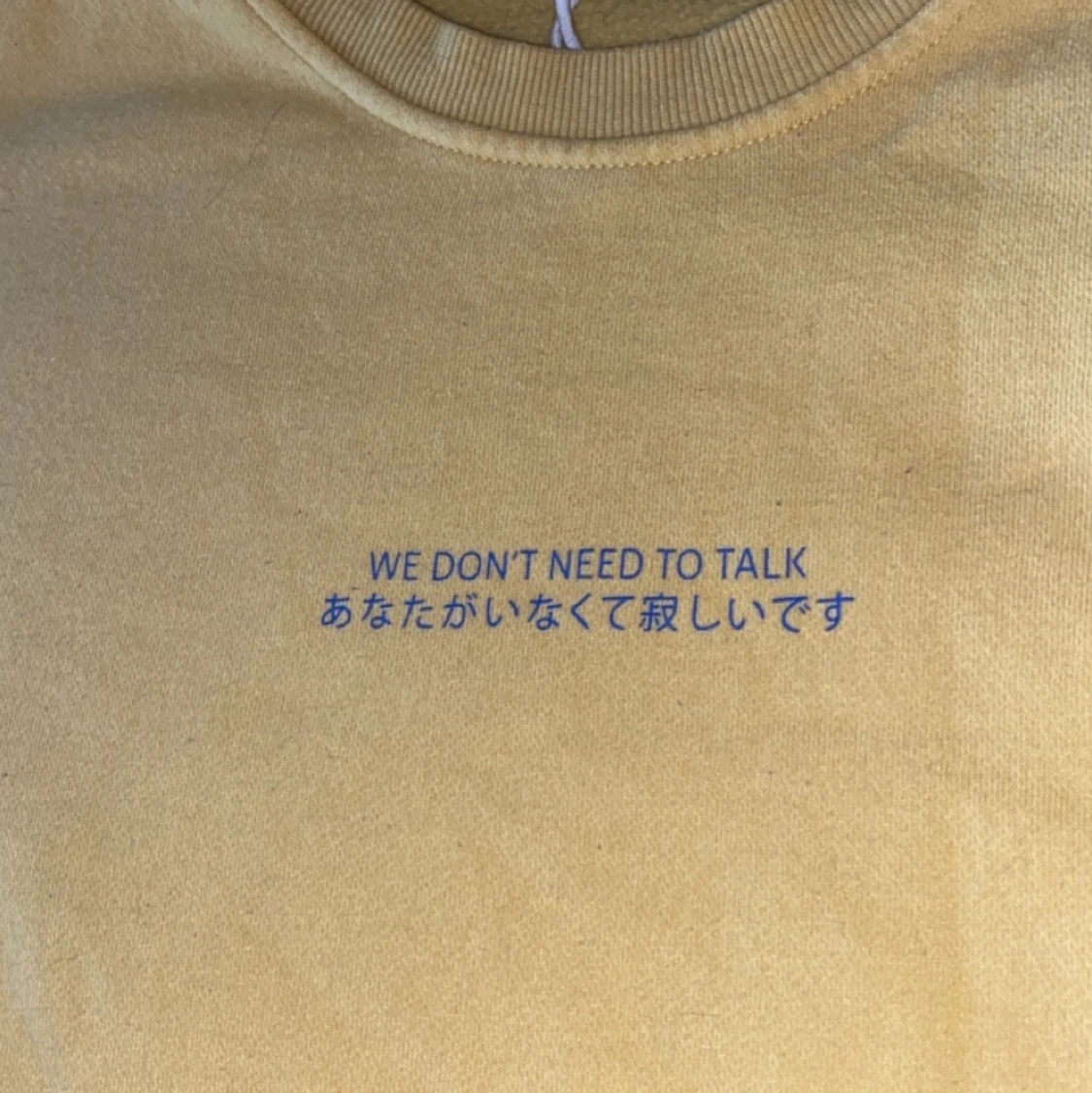 yellow sweatshirt with Japanese inscription "we dont need to talk" size S