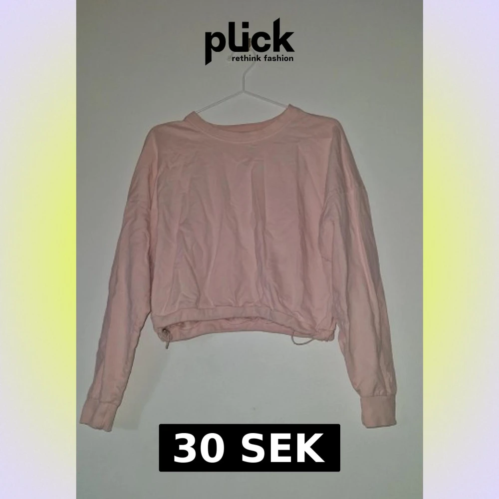 Ljusrosa croppad sweatshirt från Etirel med långa ärmar och rund hals. Tröjan har snörning nertill för justerbar passform. Perfekt för en chill och avslappnad stil.