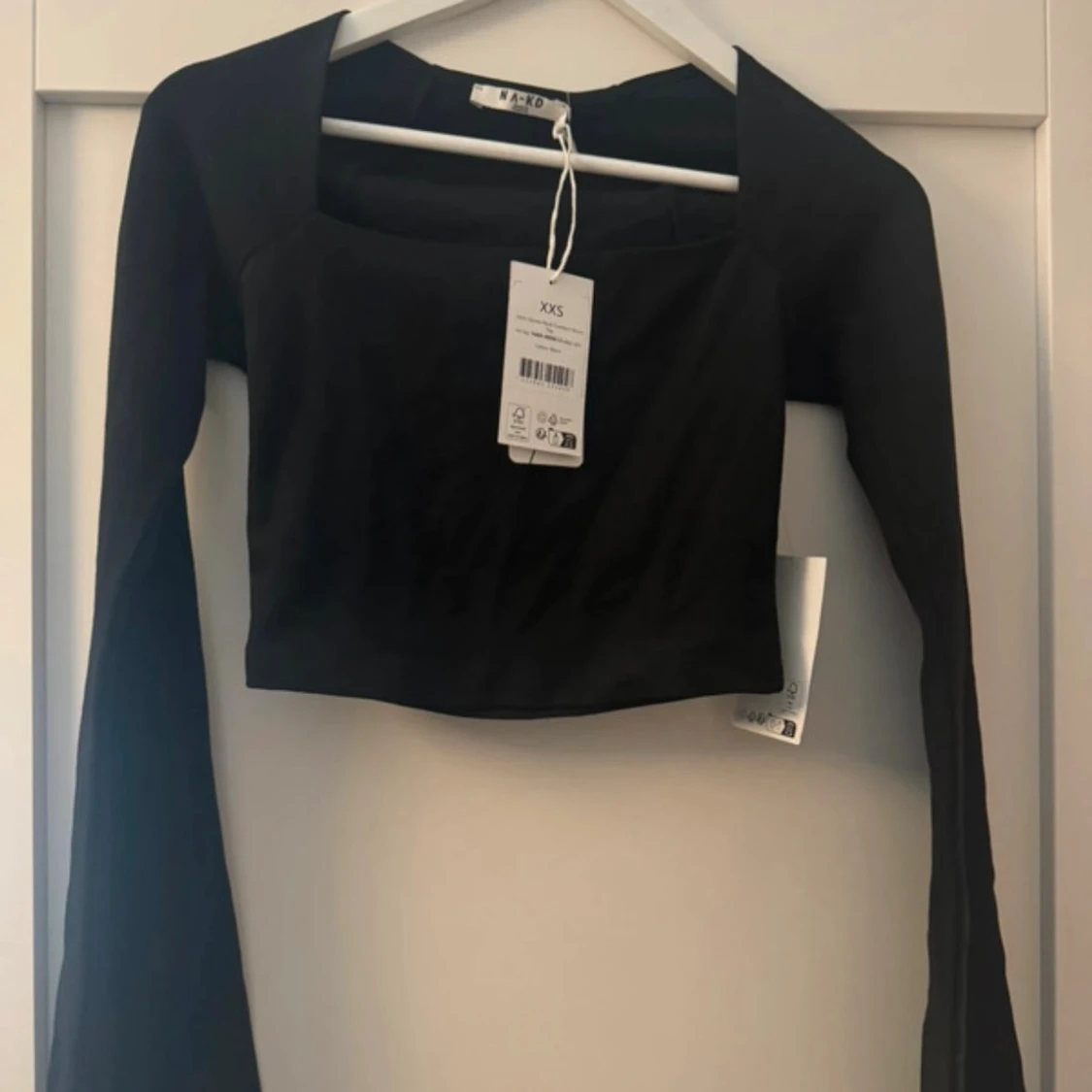 Croppad topp med utsvängda ärmar från NA-KD. Storlek XXS. Ny med prislapp.