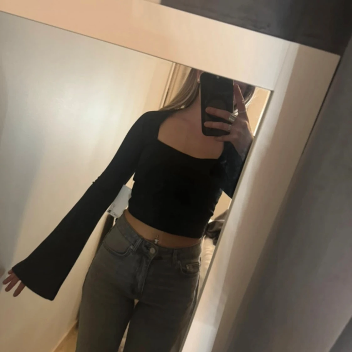 Croppad topp med utsvängda ärmar