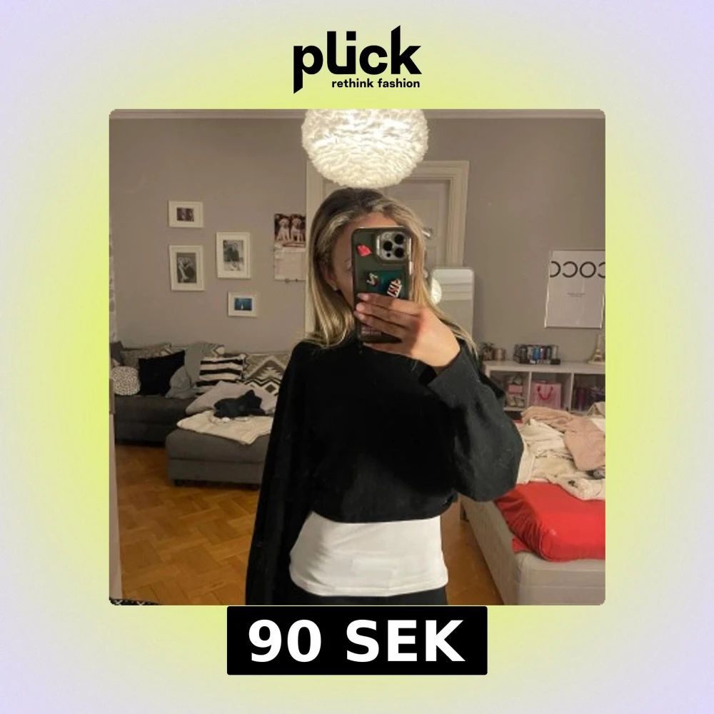 Snygg svart croppad tröja med långa ärmar. Den är perfekt för dom med Stockholmsstil då man kan t.ex ha ett linne under med spets eller vanligt💞
