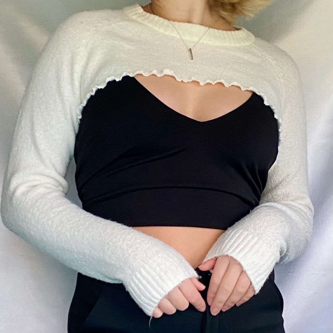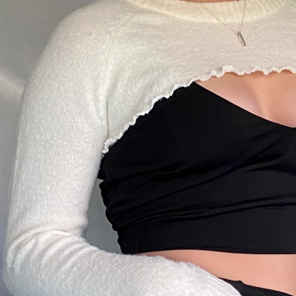 Supertrendig vit stickad tröja omsydd av mig! 50% skänks till att rädda korallreven!🌊