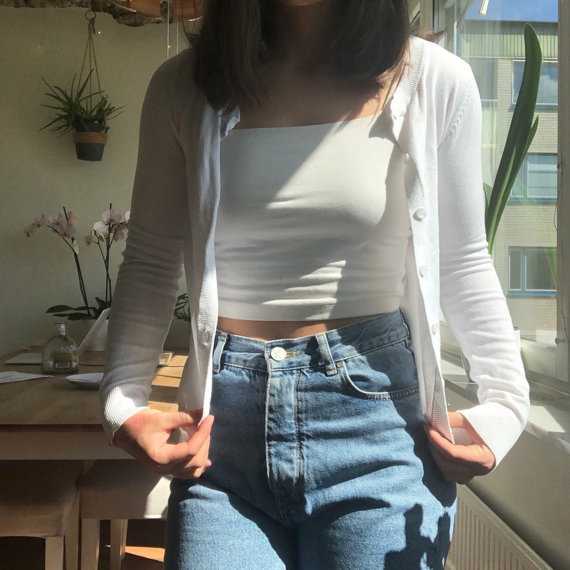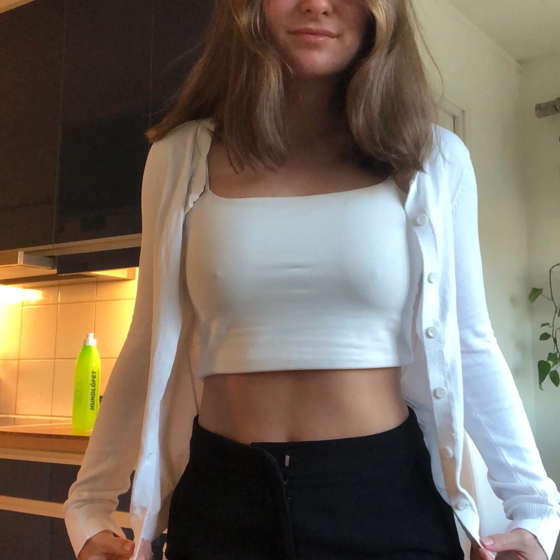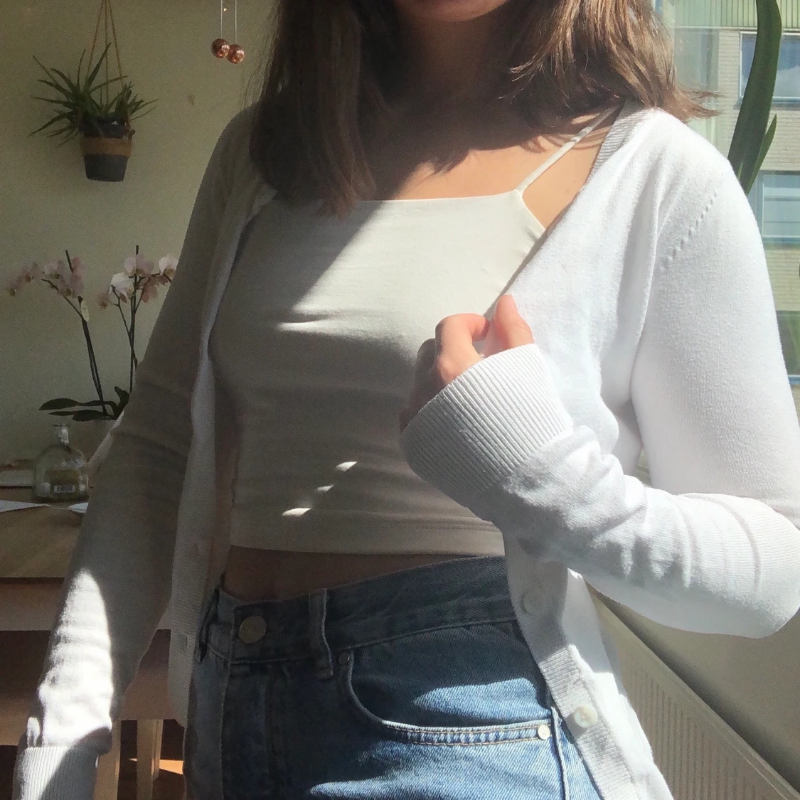 Säljer min älskade vita kofta. Har hållit kvar i den för länge för att den är så fin men den sitter alldeles för tajt på mig som ni kanske ser. Det är storlek XS och jag är S/M. Den är i mycket bra skick och har använts/tvättats sparsamt. Bara använts på finare tillfällen :)