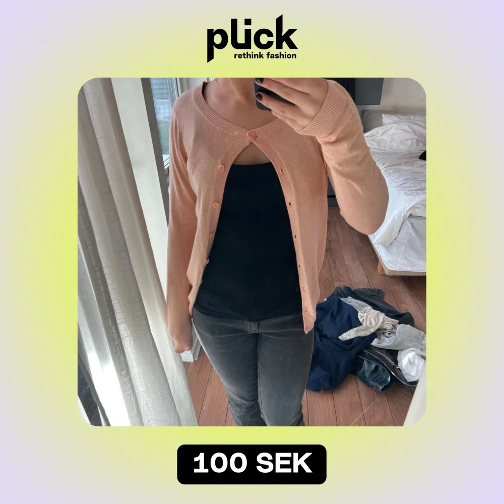 Säljer denna fina rosa/ persika färgade koftan från cubus i stolek s. Ortinalpris runt 200kr.