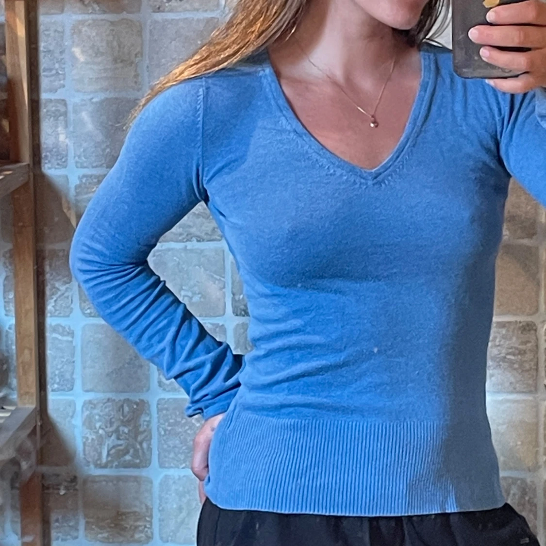 Säljer en blå v-ringad tröja från Cubus i storlek M. Tröjan har lång ärm, ribbad nederkant och är i en slim passform som sitter snyggt på kroppen. Perfekt för dig som gillar enkel och stilren look.