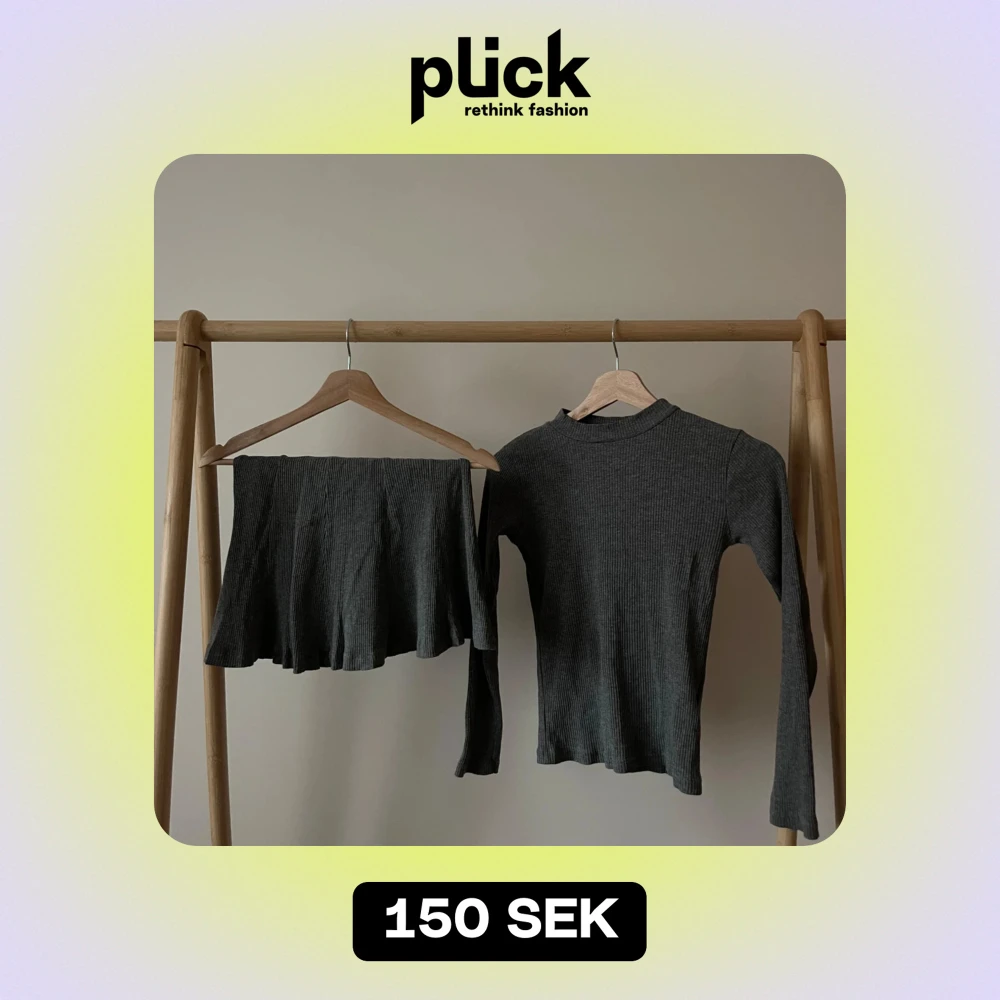 Grått och ribbat set. Kjol och långärmad, riktigt snyggt ihop med ett par boots!! 😍😍