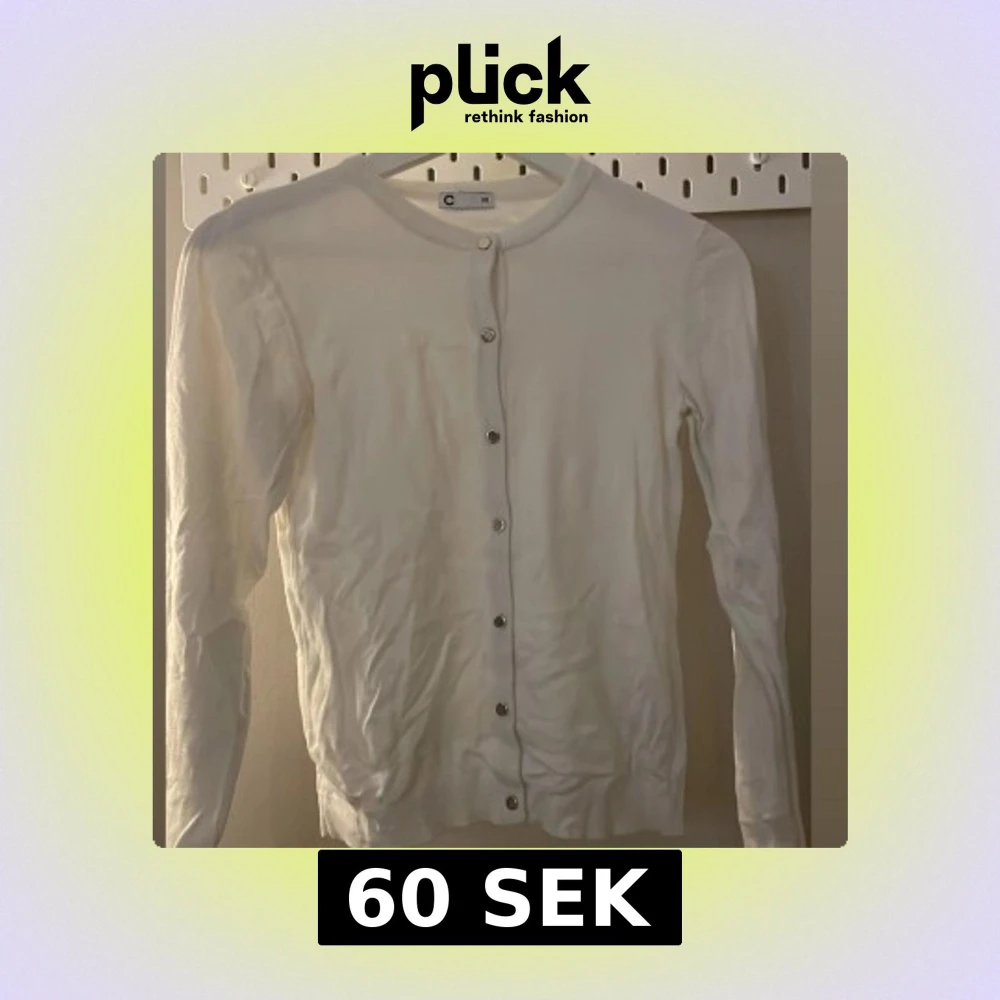 Säljer en stilren vit kofta från cubus i storlek XS. Koftan har långa ärmar och knappar framtill.