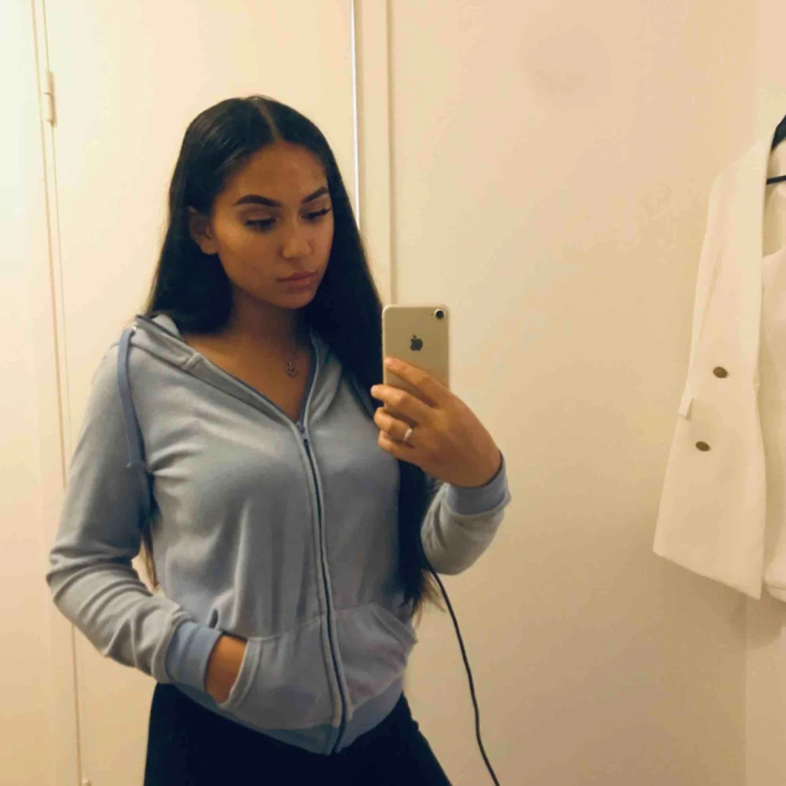Super mysig och skön hoodie i babyblå färg. Använd fåtal gånger