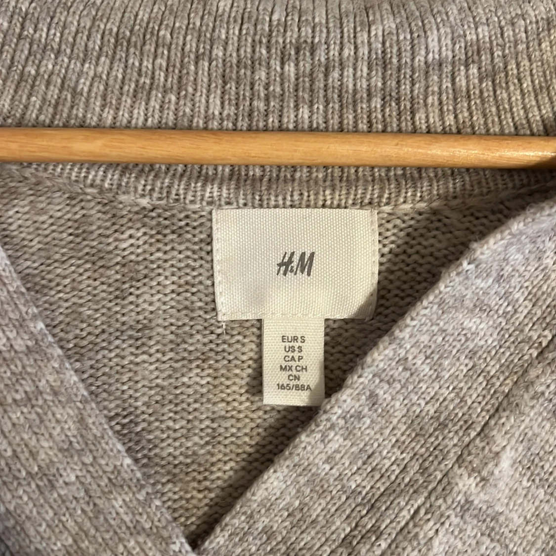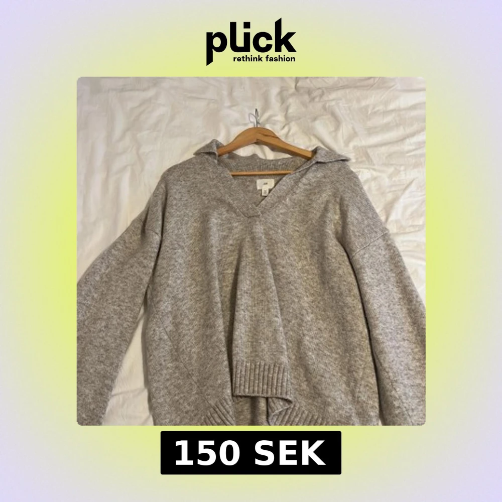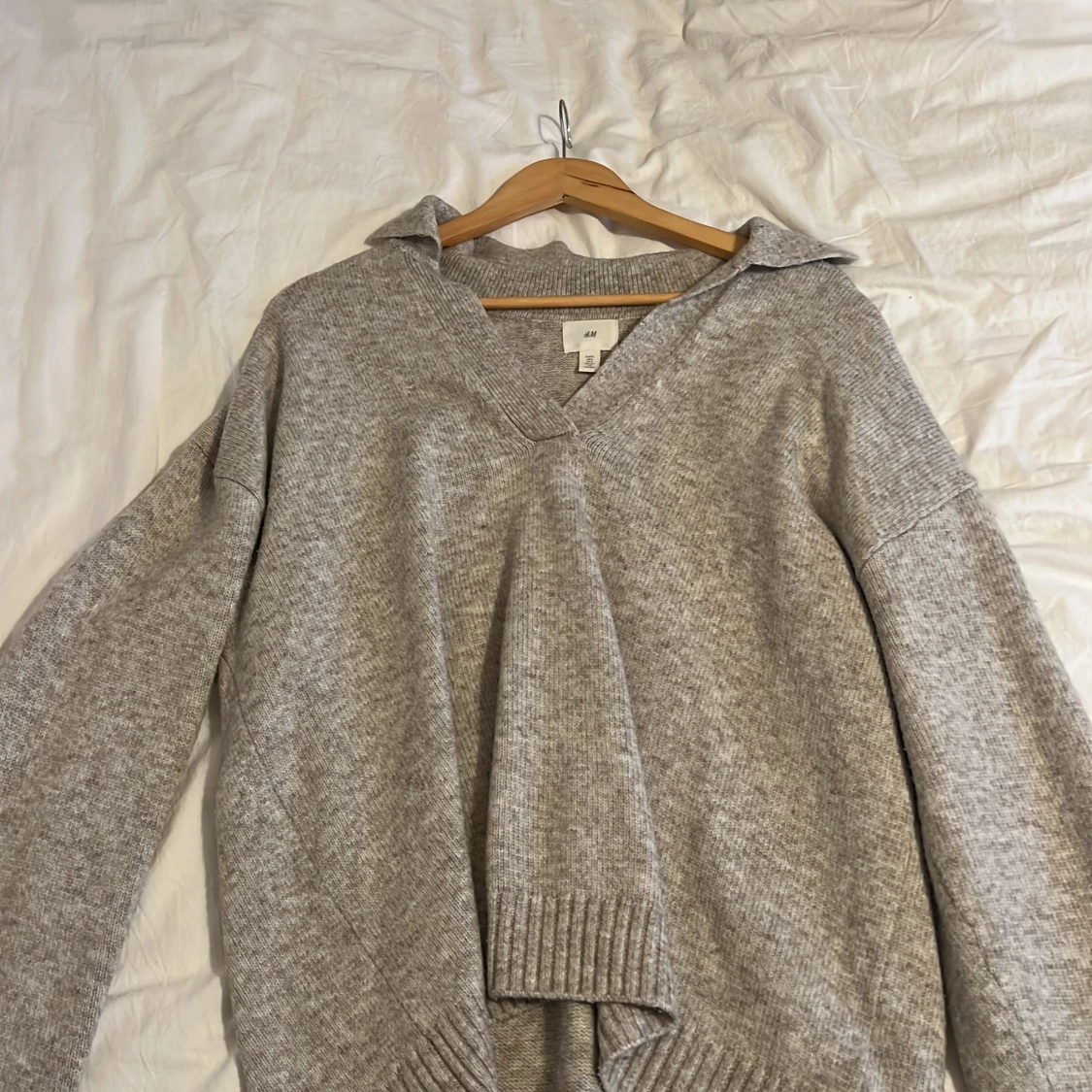 Mysig grå stickad tröja från H&M med v-ringning och ribbade detaljer. Perfekt för kyliga dagar.